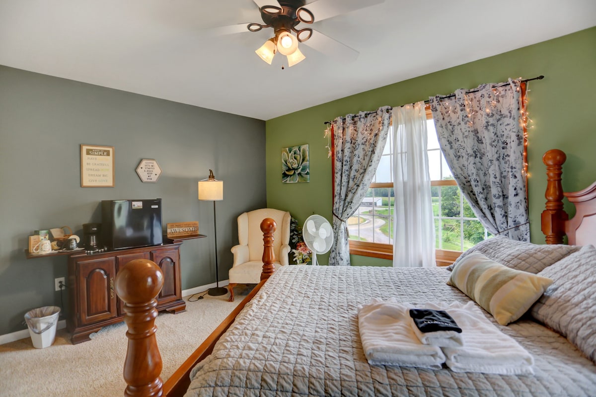 Kohteemme alakertaan ulottuva vierassviitti on sinun, ja voit nauttia laaksonäkymistä ja luon luonnosta 22 eekkerin pelloilla ja metsissä Big Spring State Parkin vieressä. Rentoudu, pelaa lautapelejä, pöytäjalkapalloa tai pelihallikoripalloa sisätiloissa tai nauti nuotiopaikasta, frisbeekentästä, tähtien katselusta, patikoinnista, hevonenkengillä pelaamisesta tai piknikistä paviljongissa. Useat osavaltion puistot ovat tunnin ajomatkan päässä, ja niissä voi kalastaa, meloa ja uida. Vain 15 minuuttia moottoritieltä Willow Hillin poistumispaikalla Route 75. Varo amish-vaunuja!