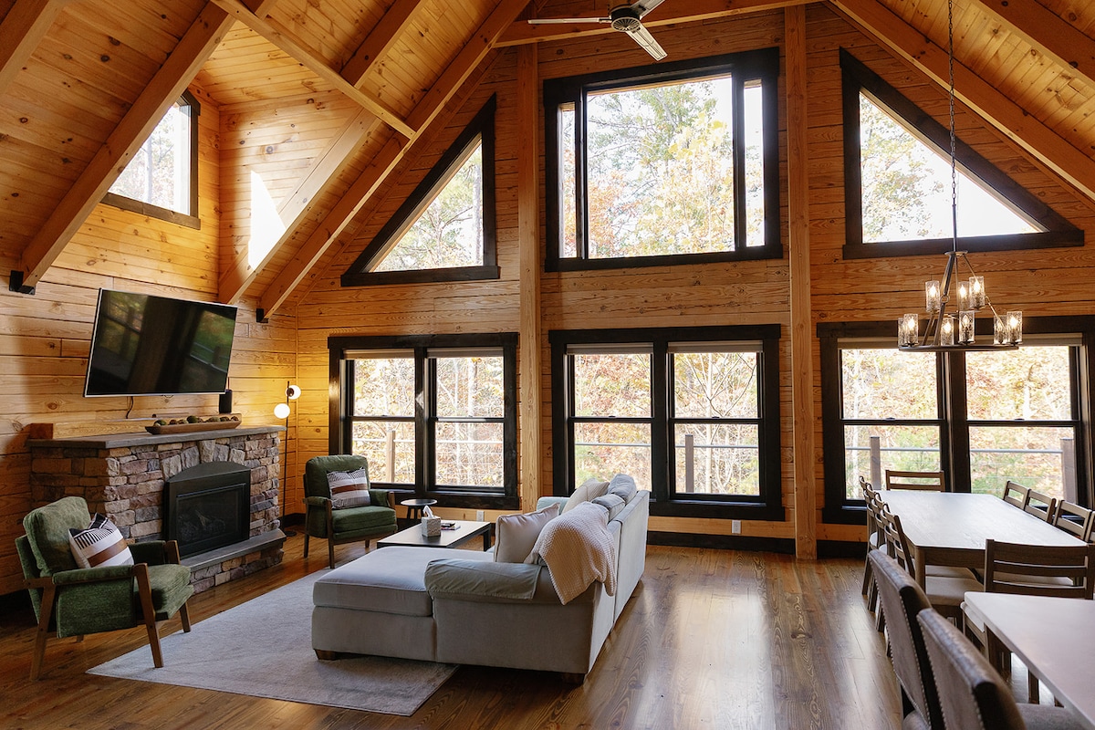 🌲 What Guests Love Most: • 20’ Wall of Glass + Forest Views • Peaceful Setting (but close to everything) • Professionally Designed Interior • Modern, Fully Equipped Kitchen (high end appliances/cookware) • Smokeless Fire Pit (firewood provided) • Luxury King Bed + High-End Linens • All Lights Dimmable • Washer/Dryer • Fast WiFi (home office) 🛏 Sleeps 4 Comfortably Primary Loft Bedroom: king bed, dramatic forest views Main Floor: Queen bed (upgraded mattress), 20’ ceilings