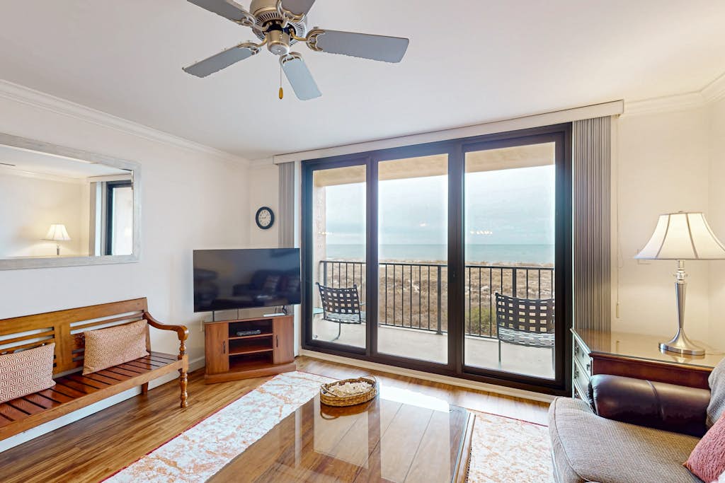 PANORAAMANÄKÖALA MERENRANNALLE HETI, KUN AVAAT OVEN! Parveke rannalla – katsele auringonnousua / kuule aaltojen liplatus! Rantauima-allas, Tiki Bar & Grille ILMAINEN pickleball, tennis, kuntosali, lentopallo ja paljon muuta HGTV:n suunnittelijan remontointi KING-SIZE-VUODE + kaksi 65" älytelevisiota Kylpyamme Laajennettu makuuhuone pimennetyillä verhoilla Rannikkosisustus Täysin varustettu keittiö Rantatuolit, bodyboardit, kylmälaukut ja paljon muuta LOMAKESKUS Pyörävuokraus paikan päällä 4 rantatietä 3 ravintolaa Urheilubaari Aidattu ympärivuorokautinen vartiointi Kausiluonteinen saarekärryn pysäkki