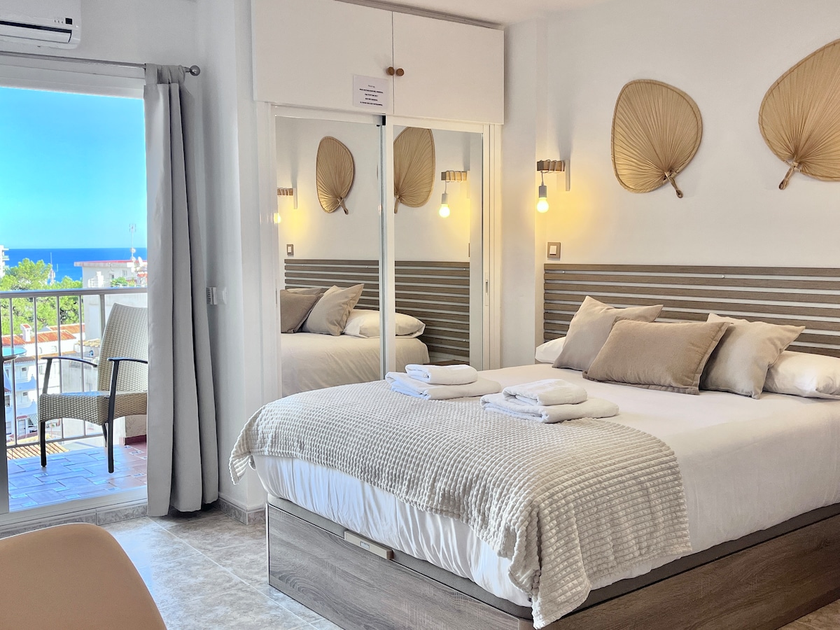 Moderni studio-sviitti, josta on merinäköala ja paljon Välimeren valoa. Avoimessa tilassa on mukava parivuode, pieni keittiö ja moderni kylpyhuone. Viime vuosina kunnostettu ja huolellisesti ylläpidetty kohde yhdistää tyylin ja mukavuuden. Terassi kutsuu nauttimaan aamiaista auringossa. Ranta, ravintolat, kahvilat ja kaupat ovat kävelymatkan päässä. Huomautus: Hissin vaihto tammikuussa 2026. Heinä- ja elokuussa ei ole töitä.