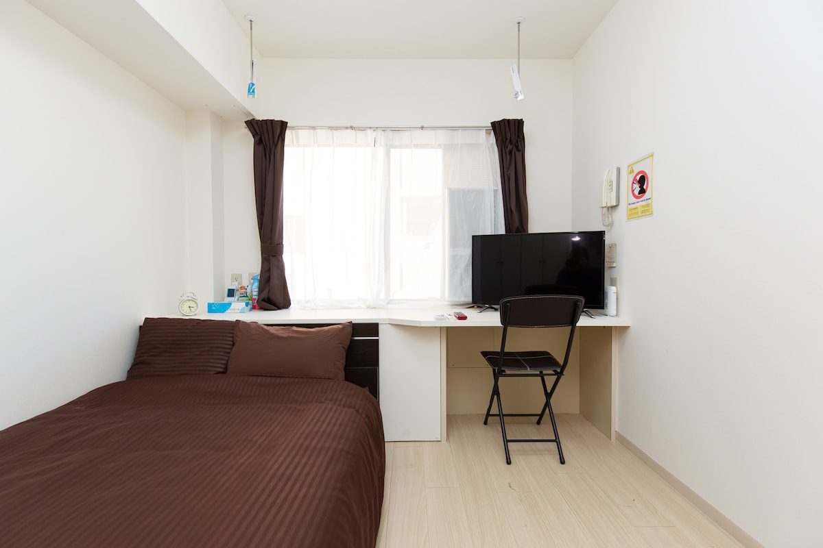 Tämä huone on yksi huoneista huoneistossa. 7 tatumin makuuhuone, keittiö, kylpyhuone ja wc ovat vieraiden käytössä. Huoneessa on parisänky, pöytä, tuoli ja televisio. Ilmainen WiFi on myös käytettävissä, joten voit käyttää sitä etätyöhön. Keittiössä on pesukone, jääkaappi, mikroaaltouuni, vedenkeitin, paistinpannu, kattila ja astiat, joten voit laittaa ruokaa itse. Kylpyhuoneessa on shampoota, hoitoainetta, vartaloshampoota, hiustenkuivaaja, kasvo- ja kylpypyyhkeitä. 4 minuutin kävelymatkan päässä on lähikauppa (Seven Eleven). Vuokraamme polkupyöriä ilmaiseksi. Majoittaja voi myös varata taksin halukkaille. Autamme sinua nauttimaan matkastasi Japanissa!