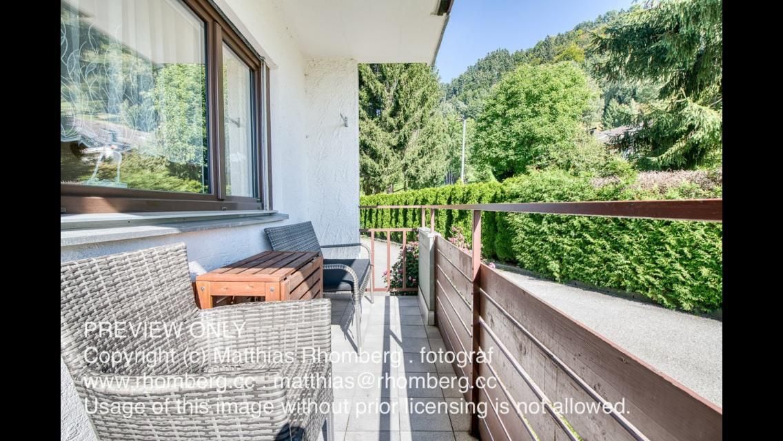 Huoneistomme on viihtyisä ja moderni. Olohuoneessa on XL-nahkasohva, sähköinen takka ja älytelevisio sekä pieni nurkkaus, jossa on pöytä ja tuolit. Keittiö on täysin varusteltu. Kylpyhuoneessa on suihkualue. WC on erillään. Hiljaisessa makuuhuoneessa on 180 x 200 cm:n parisänky. Olohuoneesta ja makuuhuoneesta sekä parvekkeelta on upeat näkymät Reininlaaksoon ja Sveitsin vuorille.