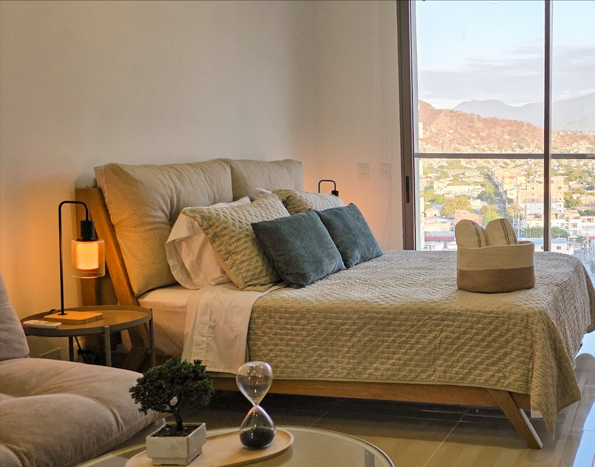 Moderni loft-huoneisto merinäköalalla vain 100 metrin päässä Rodaderon rannalta. Täydellinen 1–3 hengelle, ja siellä on suuri vuode, vuodesohva, varusteltu keittiö, erillinen työtila ja moderni kylpyhuone. Sisältää uskomattomia mukavuuksia: uima-altaat aikuisille ja lapsille, täysin varustettu kuntosali, sauna ja grillausalue. Nopea wifi sisältyy hintaan. Ensiluokkainen sijainti lähellä ravintoloita, ostosalueita ja matkailunähtävyyksiä. Täydellinen pakopaikka Kolumbian Karibialle!