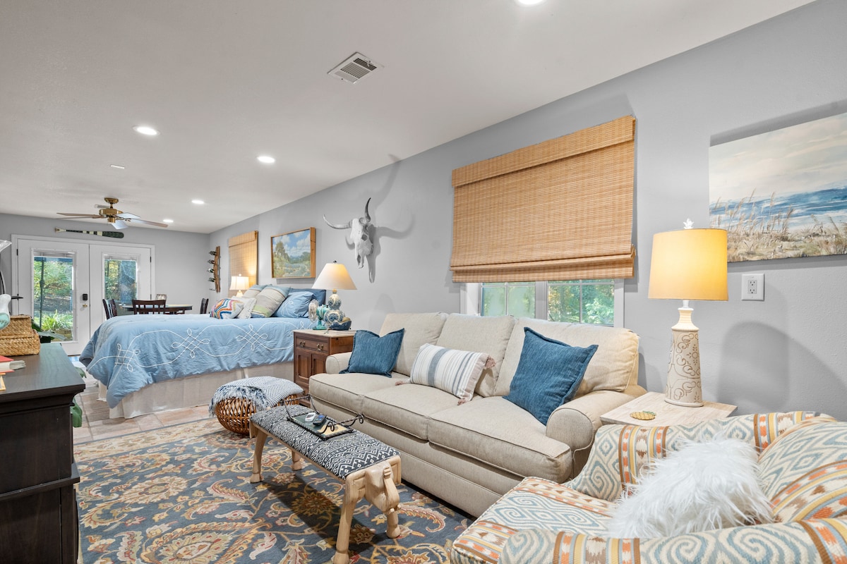 Nuotiopaikka, ulkosuihku, rantakuisti keinutuoleilla, LG-astianpesukone, kajakki, kanootti, grilli, piknikpöytä, kuistikeinu, Tesla Universal -laturi, pyörätuolille sopiva, suihkualue. Me *juuri* räätälöimme tämän veden äärellä sijaitsevan Treetops Hideaway -studiomme vanhemmillemme, kun jäämme eläkkeelle. 640 neliöjalkaa, jossa on 4 pylväinen king-vuode, alkuperäistä taidetta ja graniittinen keittokomero, jossa on yksityinen, vedenrantaan avautuva kuisti, jossa on keinut ja keinutuolit, pääsy nuotiopaikalle, ulkosuihku, kanootti, kajakki, grilliritilä, piknikpöytä ja paljon muuta.