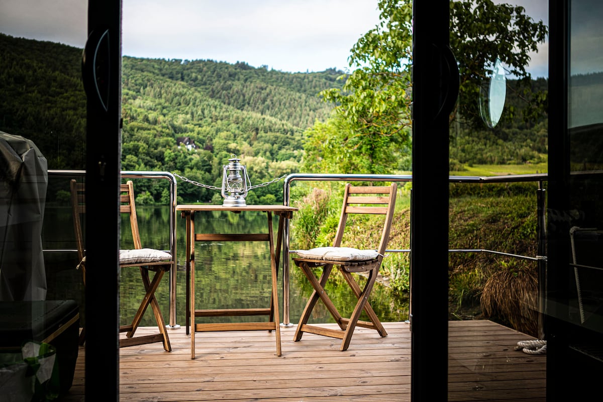 Joulukuusta helmikuun loppuun asti asuntolaiva on satama-altaassa, kuten kahdesta ensimmäisestä kuvasta näkyy. Ainutlaatuinen majoitus Mosel-joen varrella. Asuntolaiva sijaitsee ulkolaiturilla, josta on suora näkymä veteen. Aurinko hemmottelee koko päivän. Siinä on makuuhuone, jossa on parivuode, kylpyhuone, jossa on suihku, keittiö ja terassi. Kattoterassilla on toinen aurinkoterassi.