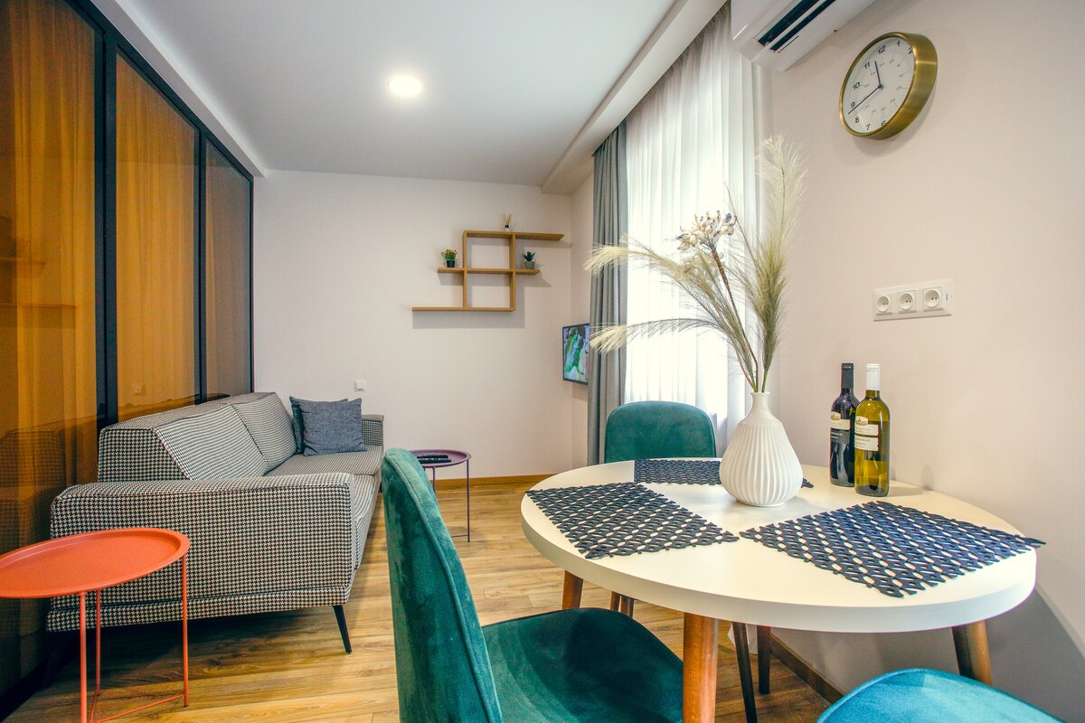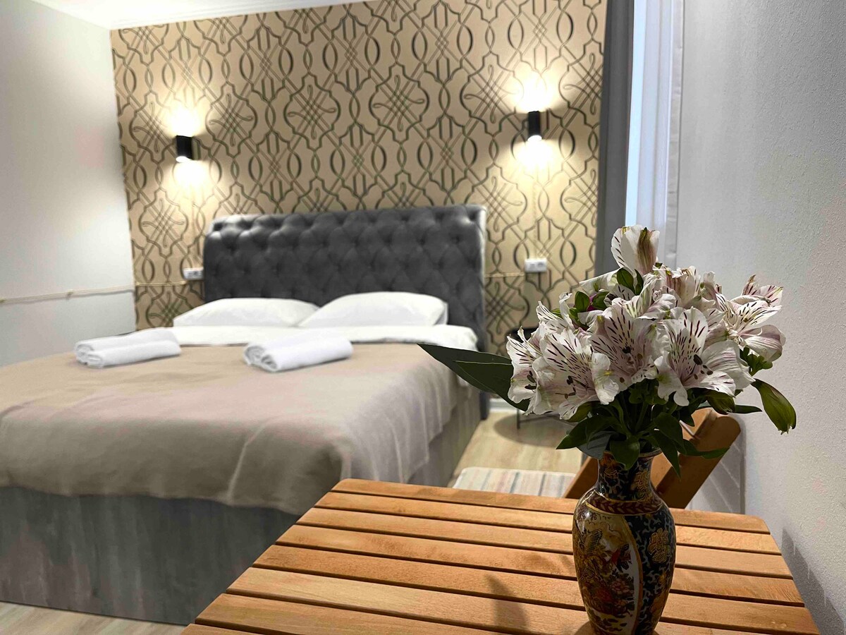 Tämä ainutlaatuinen tila sijaitsee vanhan Kutaisin sydämessä, vain muutaman askeleen päässä kaupungin keskustasta. Sen moderni suunnittelu ja runsas mukavuusluettelo täyttävät kaikki tarpeesi: 2 mukavaa queen-size-vuodetta, raikkaat pyyhkeet ja vuodevaatteet, mukava sohva tyynyillä, täysin varusteltu keittiö itsepalveluun, älytelevisio, nopea Wi-Fi, ilmastointi, pesukone ja ilmainen kahvi ja tee. Joten rentoudu, nauti ja ole kuin kotonasi🏠 Sisätiloissa 🚭 ei saa tupakoida 🐾 Ei lemmikkejä sallittu