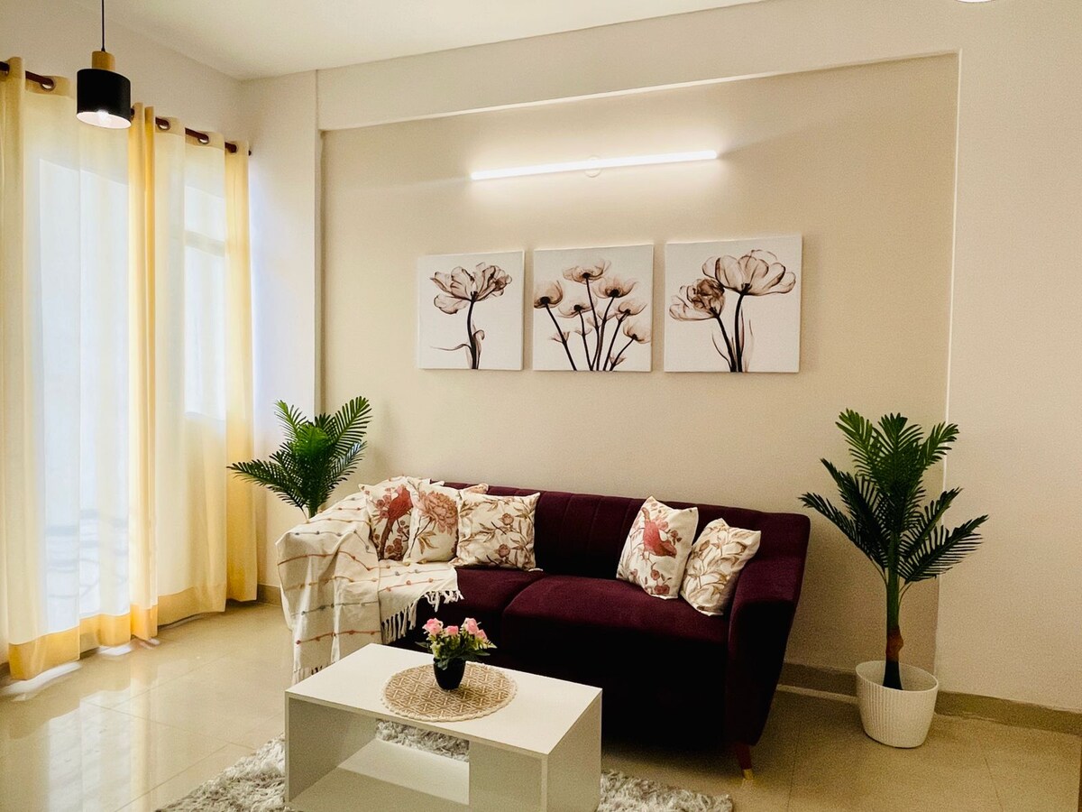 Ensimmäinen 2 Bhk: n huoneisto, joka täyttää kaikki vaatimukset ✨ - 2 makuuhuonetta ( päämakuuhuone, toinen makuuhuone) - 2 king-size-vuodetta - Tilava oleskelutila, jossa on mukava istuinjärjestely - 2 kylpyhuonetta ( 1 jokaisessa makuuhuoneessa) - Keittotila (kaikki ruoanlaittovälineet saatavilla ja mukavuudet varastossa, se on täydellinen paikka valmistaa suosikkiruokasi) - Jaettu parvekealue, joka on yhteydessä huoneistoon ja joka voi olla täydellinen paikka iltakävelyille Varaa nyt!