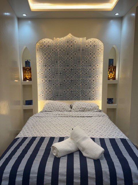 Lämmin ja viehättävä huoneisto Essaouiran vanhan medinan sydämessä! Asunnossa on 2 valoisaa makuuhuonetta, joissa on vuoteet, 2 yksityistä kylpyhuonetta, viihtyisä olohuone ja pieni mutta käytännöllinen amerikkalainen keittiö. Vain muutaman askeleen päässä soukeista, kahviloista ja rannalta. Nauti ultranopeasta valokuituinternetistä (jopa 200 Mbit/s), joka sopii täydellisesti etätyöhön tai suoratoistoon. ⚠️ Ei saatavilla naimattomille marokkolaisille pariskunnille.