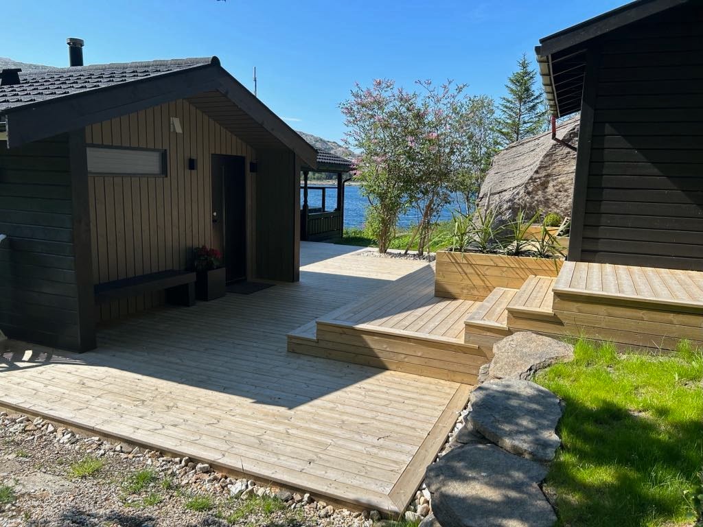 Lomamajoitukset, joiden ulkopuolella on istumapaikkoja, paikassa Gildeskål