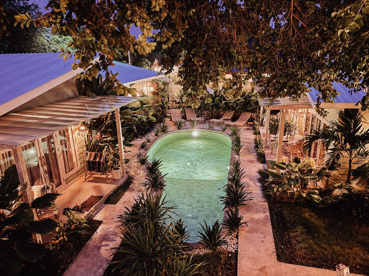 Boho-tyylisissä mökkeissämme on sisätiloissa oma kylpyhuone, jossa on suihkualue, king-vuode ja oma puutarha täydelliseen rentoutumiseen. Nauti suuresta uima-altaasta, jossa on säkkituoleja ja aurinkotuoleja, ja käy baarissamme aamiaisella (sisältyy hintaan) tai virkistävällä juomalla. Sisustus on kevyt, kodikas ja boheemi, ja mukavuutta lisäävät runsaat tyynyt.