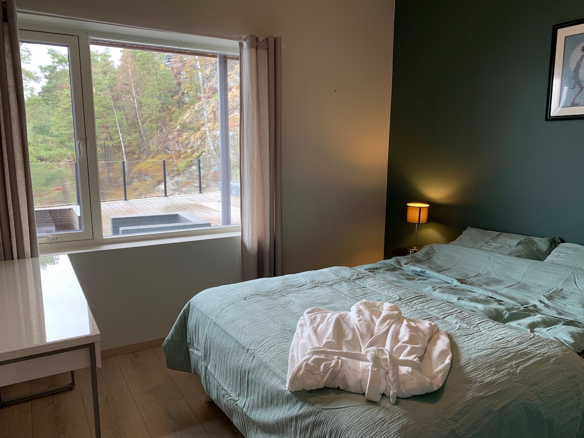 Tervetuloa Airbnb-kohteeseemme, jossa Trivselsskogen on lähin naapuri, ja Sandanen keskustaan lyhyen kävelymatkan päässä viihtyisistä kaupoista ja kahviloista. Yksityinen aurinkoterassi katon alla, josta on kaunis näkymä Sandanen keskustaan ja pääsy terassille. Sandanella on paljon tarjottavaa: Trivselsskogen on ainutlaatuinen patikointialue, jonka kanssa sinun tarvitsee vain vaihtaa kuulumisia! Trivselshagenissa on uima-tilat, urheiluhalli, kulttuuritalo ja elokuvateatteri. Sandanessa on 9-reikäinen golfkenttä, ja meillä on upeita patikointialueita, jos pidät vuoristoretkistä.