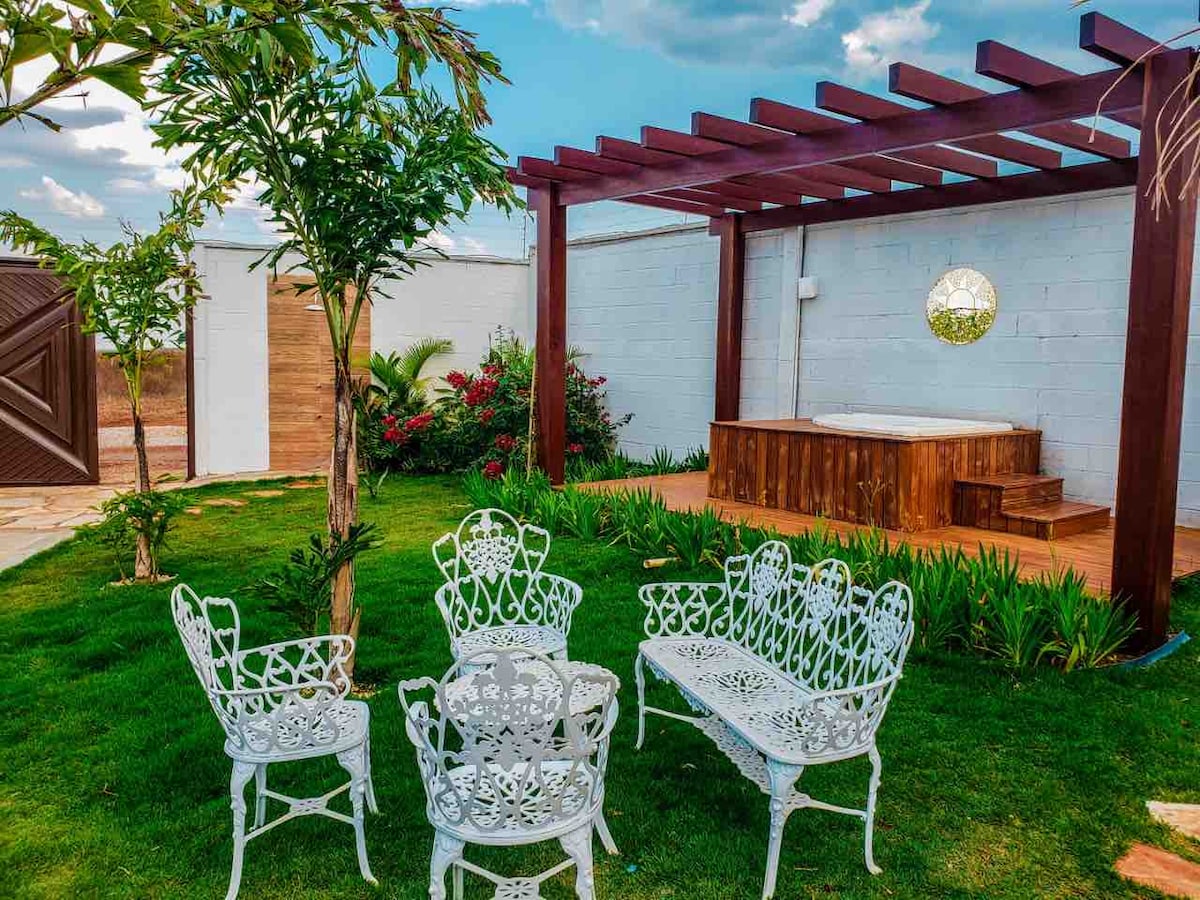 Rentoudu koko perheen kanssa tässä hiljaisessa majoituspaikassa. Vihreä tila, jossa on hiekkakenttä, uima-allas, koristejärvi ja paljon muuta... koe hetkiä, jotka tuovat sinut lähemmäs luontoa! Lähellä Goiâniaa, ihanteellinen paikka viettää rauhallisia päiviä läheistesi kanssa. Täysin varustettu keittiö, jossa on puuhella ja grillausgrilli... Pakene arjen hälinää ja nauti rentouttavista hetkistä perheesi kanssa täysin turvallisesti ja mukavasti.