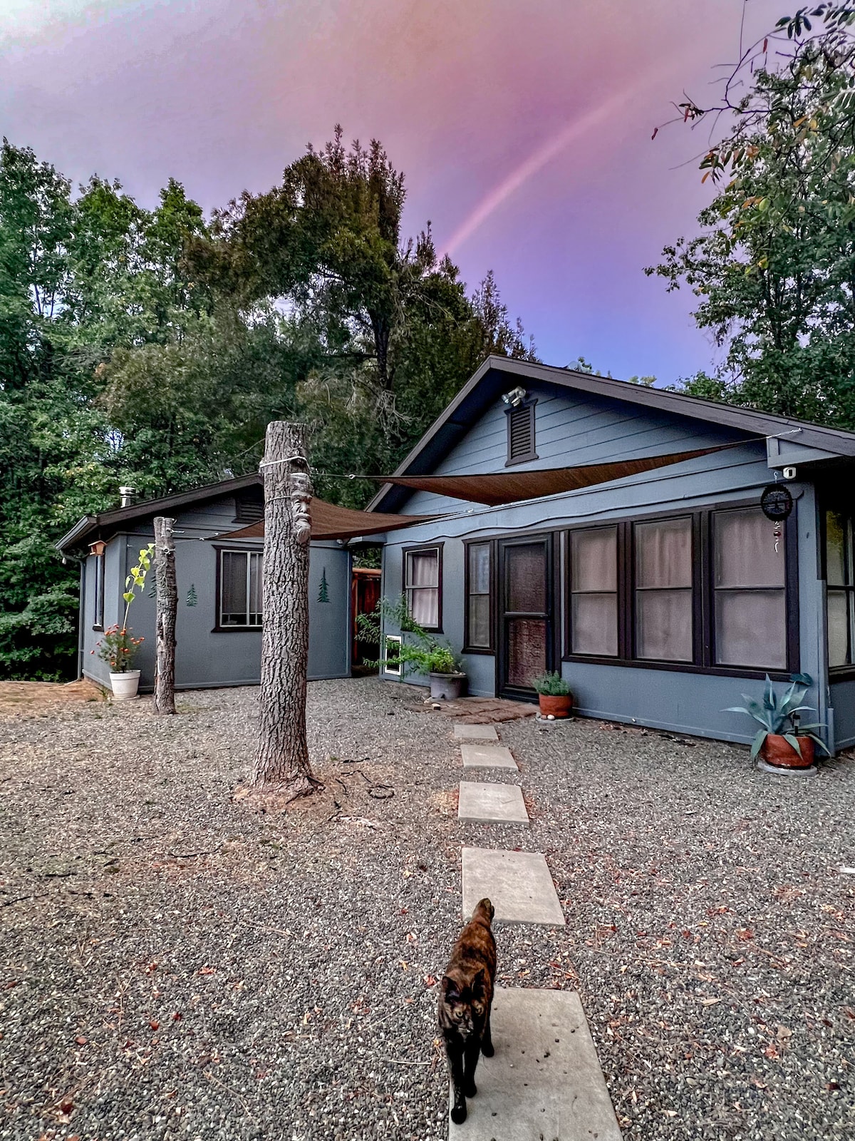 5 mailia valtatielle 80, 10 mailia Grass Valleylle. 96-535 mbps. EV-2-laturi. 20 dollaria koiraa kohden päivässä. 20 dollaria porealtaan käytöstä majoittumista kohden. Veneen telakka 1,6 km. Sinun yksityisellä puolellasi mökistä on yksityinen sisäänkäynti omiin 3 huoneeseesi: olohuone/ruokailutila, takka, 2 makuuhuonetta ja 1,5 kylpyhuonetta. Ei keittiötä, mutta siellä oli pieni fridg-mikroaaltouuni, kahvinkeitin, ulkoliesi. BR 1 Q-vuode, BR2 2 yhden hengen vuodetta. LR: llä on t.v. + Q Sofabed, nojatuoleja ja takka. Kuistin, takakannen ja nuotiopaikan käyttö. Erittäin suuri pysäköintialue. Täysin aidattu.