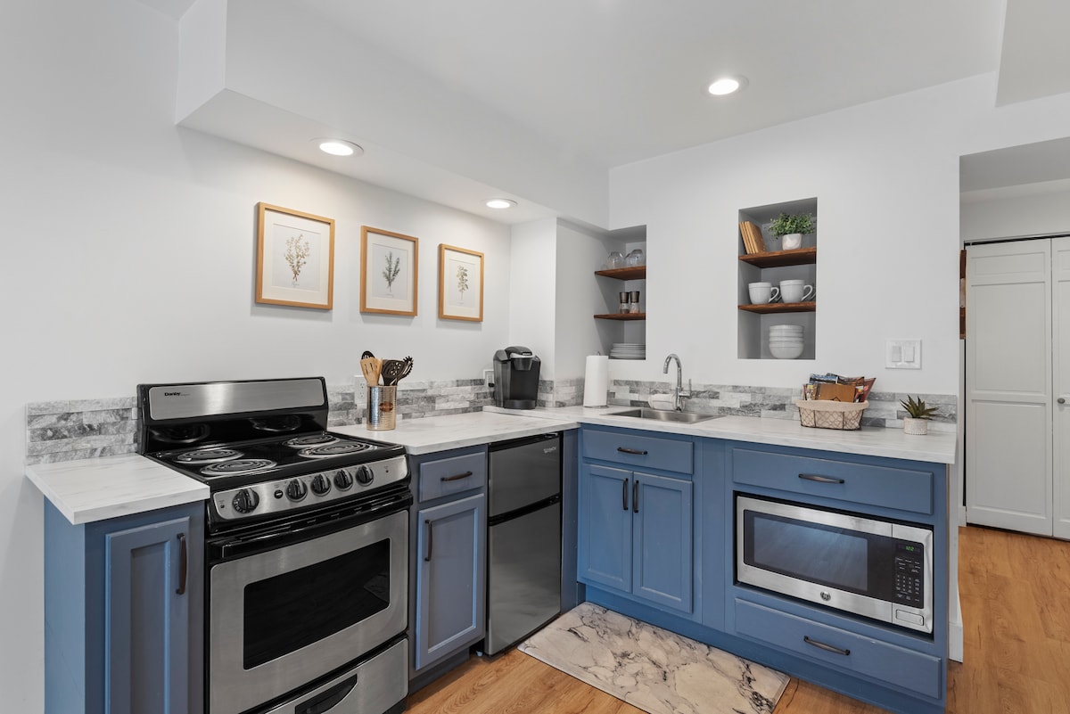 1 makuuhuone/1 kylpyhuone, jossa on yksityinen sisäänkäynti modernisoidussa kodissa Goldenissa, CO:ssa. Kävelyetäisyydellä Goldenin keskustan Washington Avenuelle (12 minuutin kävelymatka). Alempitasoisessa sviitissä on pohjakerroksen sisäänkäynti/ei portaita. Olohuoneessa on kaasutakka, keittokomero, sohva, työpöytä, pelikonsoli ja TV. Keittiössä on pesuallas, kahvinkeitin, keittolevy, mikroaaltouuni, astiat ja minijääkaappi. Kylpyhuone, pyykinpesukone/kuivausrumpu, pesuallas, wc ja laatoitettu suihku. Majoittuu korkeintaan 3 henkilöä. Lämmin, ainutlaatuinen tila, jolla on aivan oma tyylinsä! Kultainen Lic STR2021-0014