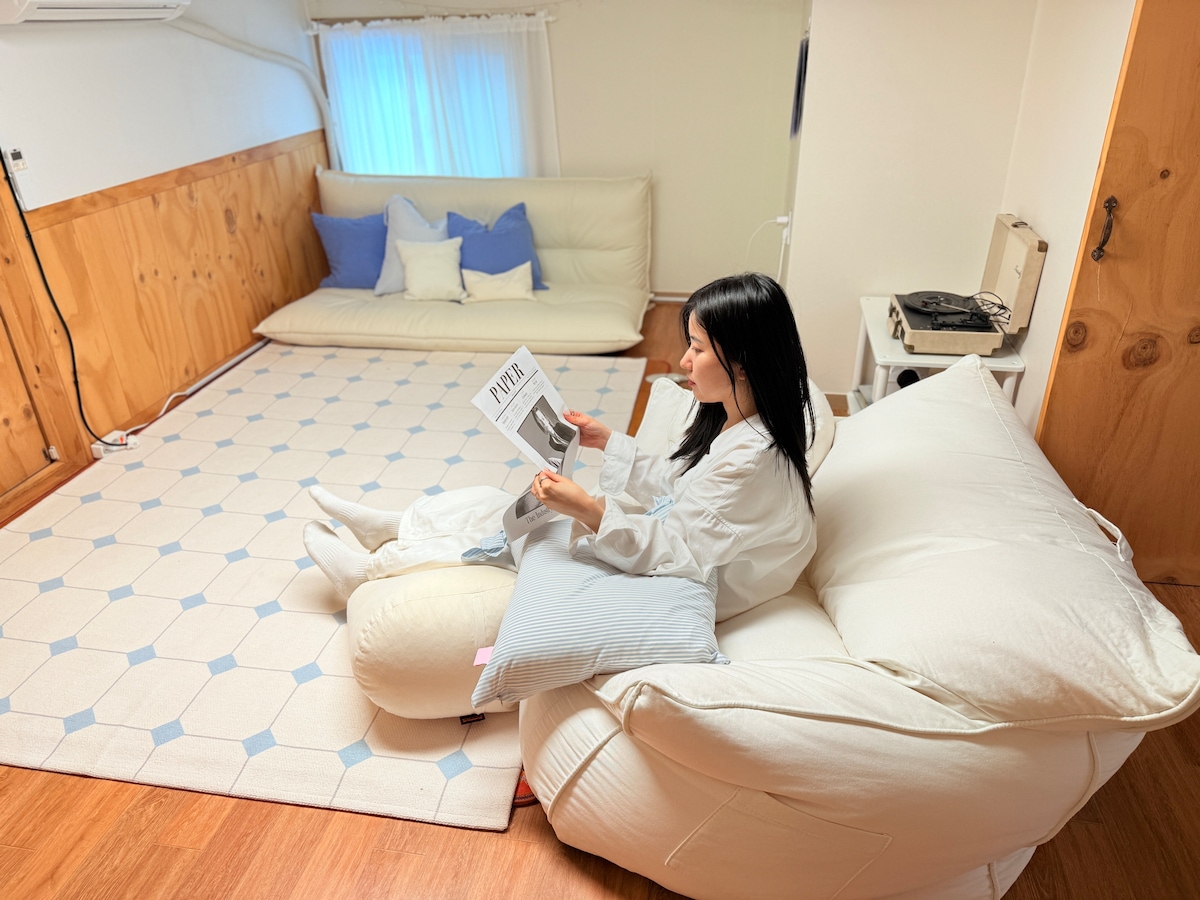 Ttukseom-asema 5 minuuttia # Seongsu-asema # Yeonmujang-gil 10 minuuttia # Seongsu-dongin kahvilakatu # Soulin metsä # Juhlahuone # 8 henkilöä # Yksityinen huone 2. kerroksessa # Terassi Seongsu Danjam