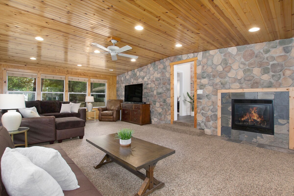Tämä minikoti on todella ainutlaatuinen ja todella siisti! 2-kerroksisessa tilassa yhdistyvät maalaistyylinen latopuu, tyylikäs ja moderni keittiö, täydellinen kylpyhuone, ja se on vain 5 minuutin kävelymatkan päässä rannalta. Nauti MIchigan-järven auringonlaskuista betonileimatulta terassilta ja rentoudu tähtien alla porealtaan yksityisyydessä. Vuonna 2021 valmistunut Tiny Barn ei säästä yksityiskohtia: ulkosuihku, kaasutuli, Weber-hiiligrilli, rantatuolit ja kylmälaukku, patiolla lumensulatusjärjestelmä. Varattavissa. Ole osa ylistäviä arvosteluja!