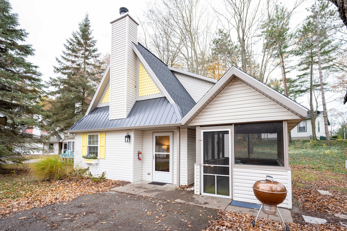 Hiljainen ja rauhallinen. Täydellinen paikka paeta luontoon ja rauhallisuuteen, kun rentoudut puuhellan edessä viihtyisässä mökissämme! Alle 3 minuutin päässä Saugatuck Dunes State Parkista, joka johtaa Michigan-järvelle (5 minuutin pyörämatka). 5 minuutin päässä Saugatuckin keskustasta ja kaikenlaisista paikallisista kaupoista, ravintoloista ja viihteestä! 10-15 minuutin päässä Hollandista, jossa voit nauttia vuosittaisista festivaaleista, kuten Tulip Time tai Girlfriends' weekend Downtown! Tule viihtymään ja rentoutumaan pois hälinästä!