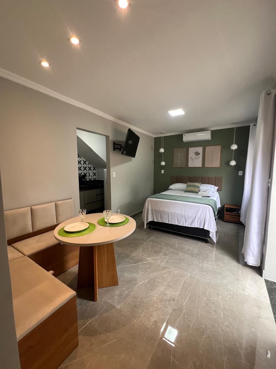 Löydä täydellinen lomakohteesi upeasta loftistamme! Tämä moderni ja kodikas tila sopii täydellisesti pariskunnille, yksin matkustaville tai jopa ystäville. - Espaço Aconchegante: Loft Completed. Sisältö: – Täysin varustettu keittiö: varustettu aterimilla, liedellä ja jääkaapilla aterioiden valmistamiseen, tehosekoittimella ja ilmakeittimellä. - Ilmainen wifi. _ÄLYTVO SOVELLUKSILLA. - Ilmastointi. - vuodevaatteet ja pyyhkeet. - Ilmainen pysäköinti. - 1 parivuode