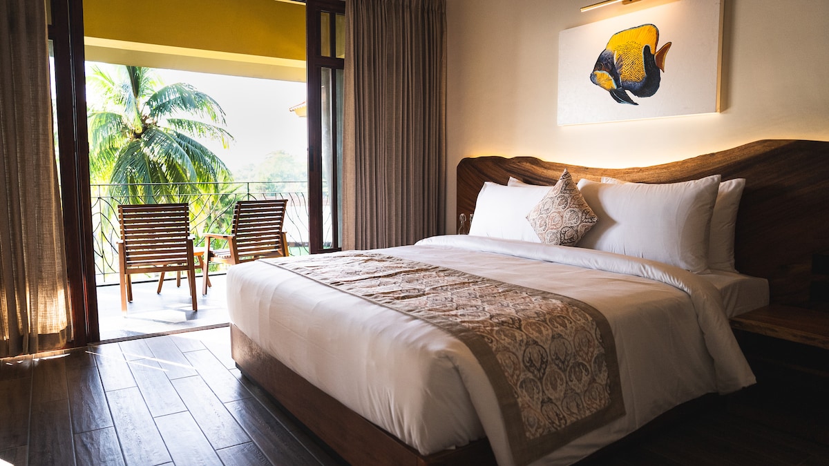 Bamboo hut with attached bathroom One double bed with mosquito net and one hammock in front of the hut. The place is covered by coconut trees and it's possible to enjoy good food in our restaurant. 60 meters far there is the sea you can go for snorkeling or enjoy the sunset. Need shoes to go inside the water because of the rocks. You can also rent a bicycle to move all around the island and enjoy other beaches. Wi-Fi not included in the price of the room