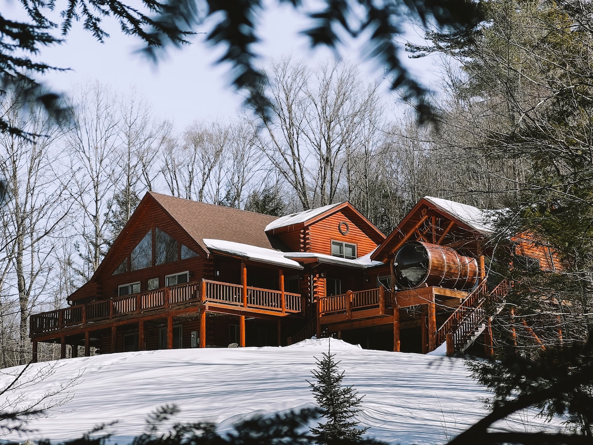 Nautiitä vuoristonäkymää samalla kun olet yksityisessä porealtaassasi! 3 makuuhuoneen hirsimökki, jossa on ulkona 6 hengen poreallas ja sisällä poreallas. Oma osasi Little Riveristä ja näkymä North ja South Twin Mountainsiin. 8 minuuttia Bretton Woodsiin ja Mt. Washington Hotel. Lähellä Bethlehemiä, Littletonia, Santa's Villageä ja loputtomia polkuja White Mountainin kansallisessa metsässä. Lemmikkieläimille sopiva ja sähköauton laturi paikan päällä. Tule rentoutumaan ja nauttimaan kaikesta, mitä White Mountains tarjoaa!