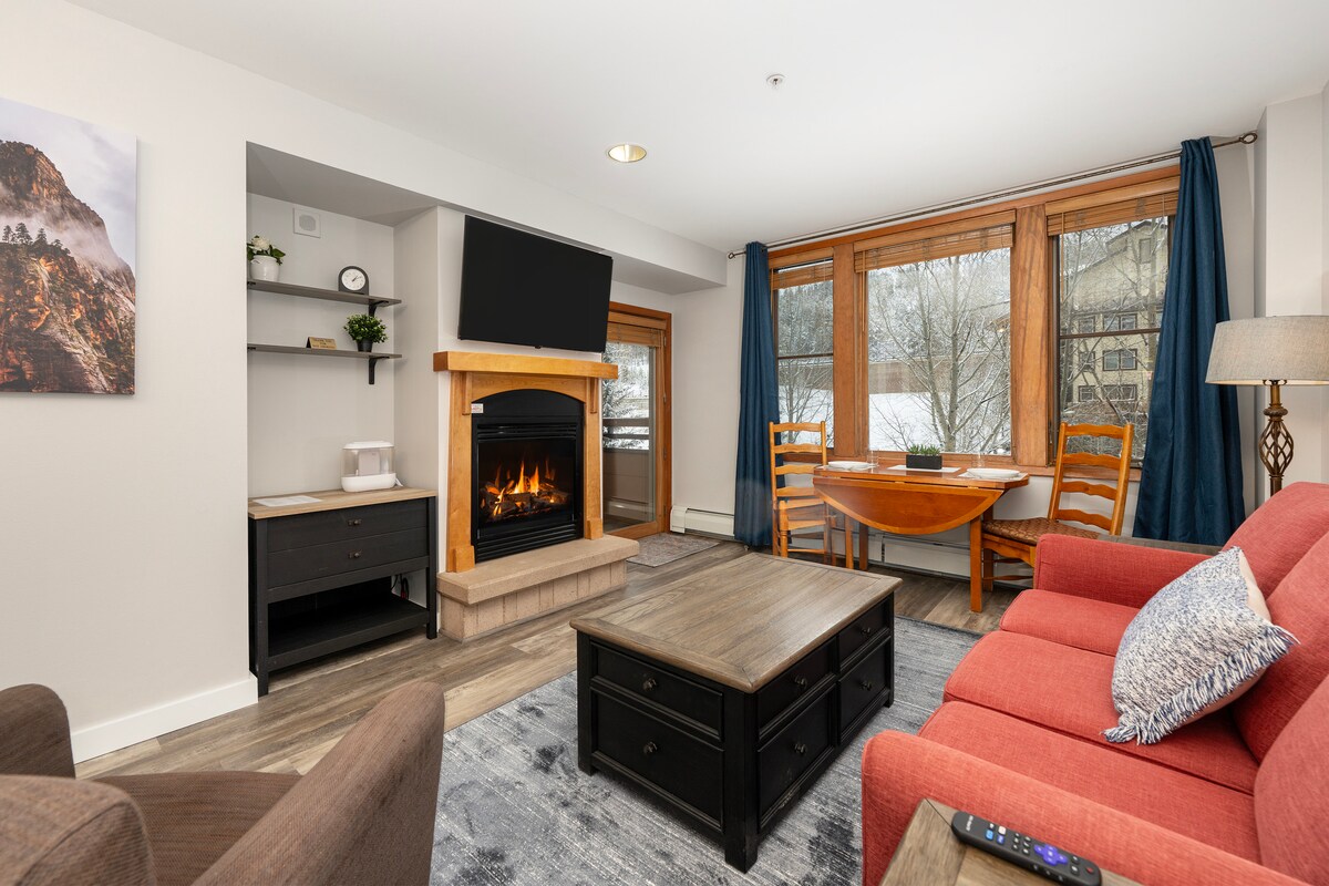 1. kerroksen huoneisto, josta on näkymät ja äänet Fraser-joelle. Kävelyetäisyydellä Winter Parkin keskustan ruokakauppaan, kahvilaan, ravintoloihin, panimoihin, vähittäiskauppoihin, baareihin, elokuvateatteriin ja keilahalliin. Yhteisön mukavuuksiin kuuluvat sisäuima-allas, porealtaat, kuntoiluhuone, oleskelutila, jossa on biljardipöytä, pesulapalvelut ja ulkoleikkipaikka. Ilmainen bussi lähistöllä sijaitsevaan lomakeskukseen. Se on hyvä paikka käpertyä sähköisen takan viereen, rentoutua ja rentoutua ulkoilma-aktiviteettien täyden päivän jälkeen.