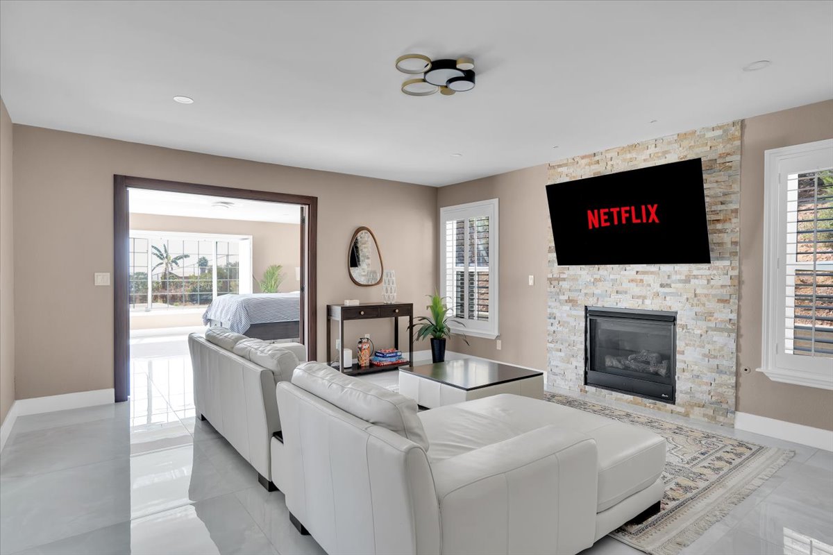 Island in the Hills odottaa! Rauhallinen perhelomakohteemme tarjoaa suuren uima-altaan, kylpylän, tilavan pihan, jossa on pelejä, ja upeat auringonlaskut kukkuloiden yllä, joista voi nauttia parhaiten nuotiopaikan istuinalueelta. Se on suunniteltu huolellisesti mukavuuttasi ajatellen, ja se on täydellinen paikka rentoutua aurinkoisessa taivaassa, kun olet lähellä San Diegon parhaita nähtävyyksiä. Nauti asunnon, takapihan ja autotallin leikkihuoneen yksinomaisesta käytöstä majoittumisesi aikana. Huomaa: Hiljainen, kunnioittava vuokralainen asuu viereisessä asuinyksikössä.