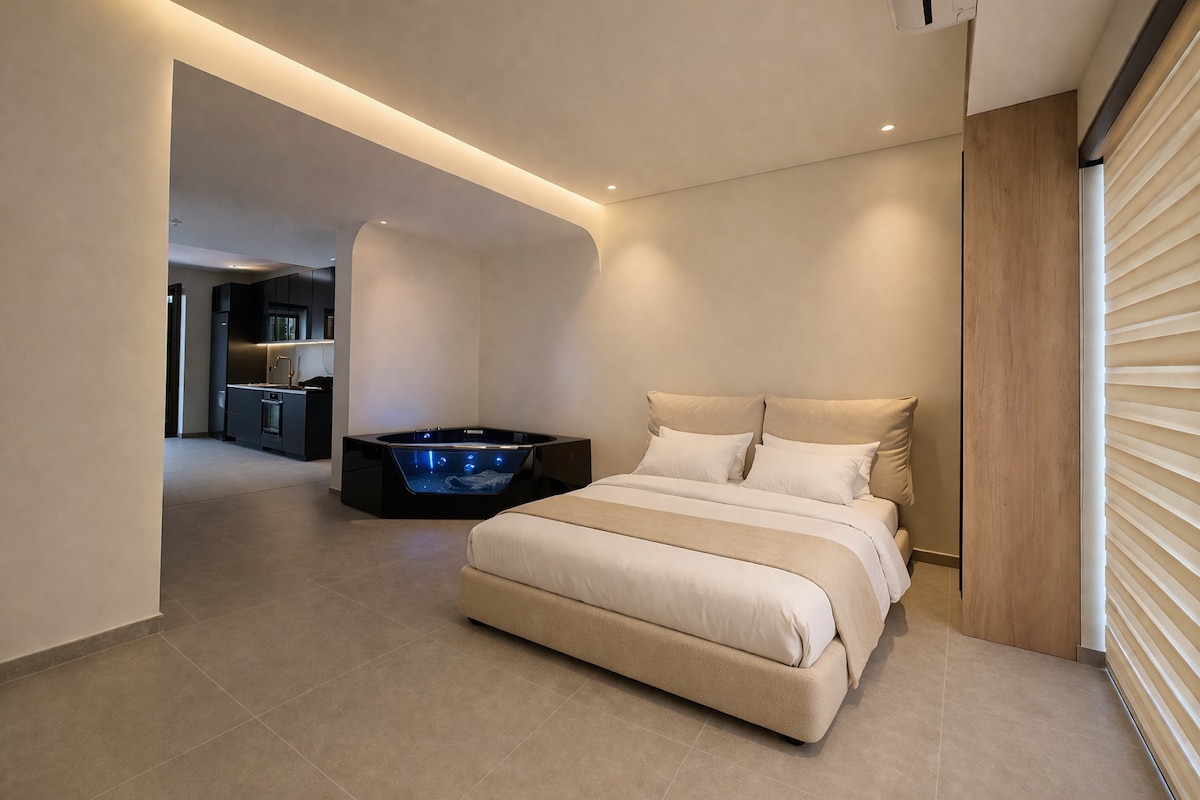 Andromeda-sviitti, jossa on yksityinen poreallas ja luolasuihku