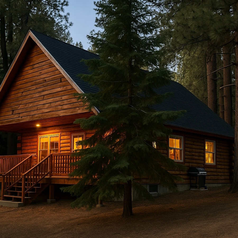 Step into a true mountain escape in this authentic log A-Frame, tucked in a quiet forest near Big Bear and Lake Arrowhead, just a short walk to the lake. This cabin is perfectly located for year-round mountain experiences—from lake days to ski trips. Warm wood interiors, soaring ceilings, and a spiral staircase create a cozy lodge feel, with two bedrooms below and a loft that functions as a third bedroom—comfortably sleeping up to six.