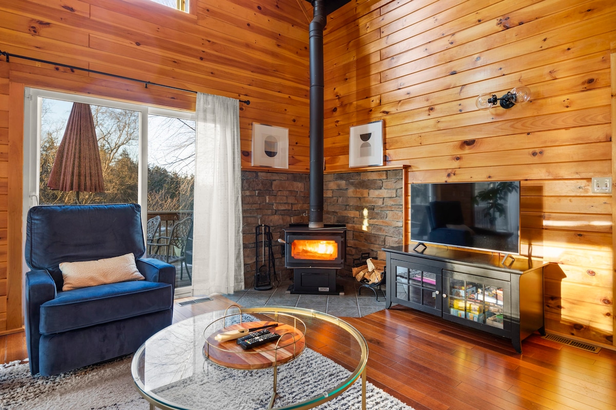 Tilava, rauhallinen luksusmökki Catskillseillä. Nauti vuoristonäkymistä, tee smoreita ja nauti porealtaasta. Voit jutella ystäviäsi kanssa holvikatossa olevassa huoneessa takan ääressä ja pelata pelejä, kun taas muut katsovat elokuvia alakerrassa. Järjestä illallisjuhlat täysin varustetussa keittiössämme. Keskeisellä paikalla, 20 minuutin päässä 6 kaupungista. Vieraile panimoissa, antiikkiliikkeissä, ruokaile, patikoi, kalasta, pelaa golfia tai rentoudu. Nopea 600 Mbit/s internet. Täydellinen ryhmille, perheille, lapsille ja lemmikeille. WFH, vastasyntynyt, lemmikkiystävällinen. Yli 3 yötä alennettu hinta
