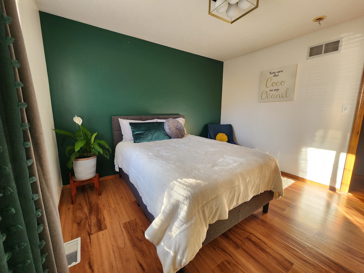Make yourself at home in a charming apartment with all the amenities! Lose yourself birding or reading a book surrounded by lush gardens. Take a short walk to downtown Homewood to enjoy shopping & dining or catch the train to Chicago. 🏳️🌈 BLM Safe space! After a day of exploring, a king-sized sleep number bed & lush bathroom features will pamper you! A fold-down sofa creates an additional bed. Dogs welcome! This suite has a kitchenette with a convection toaster oven & induction cooktop.