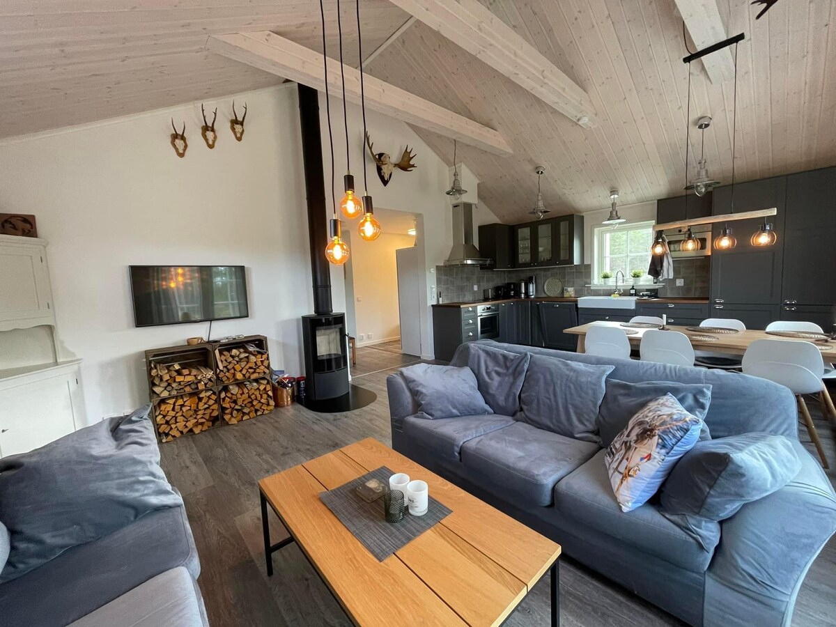 Mukava luksusmökki lähellä luontoa, suksia, pyöräilyä ja golfia