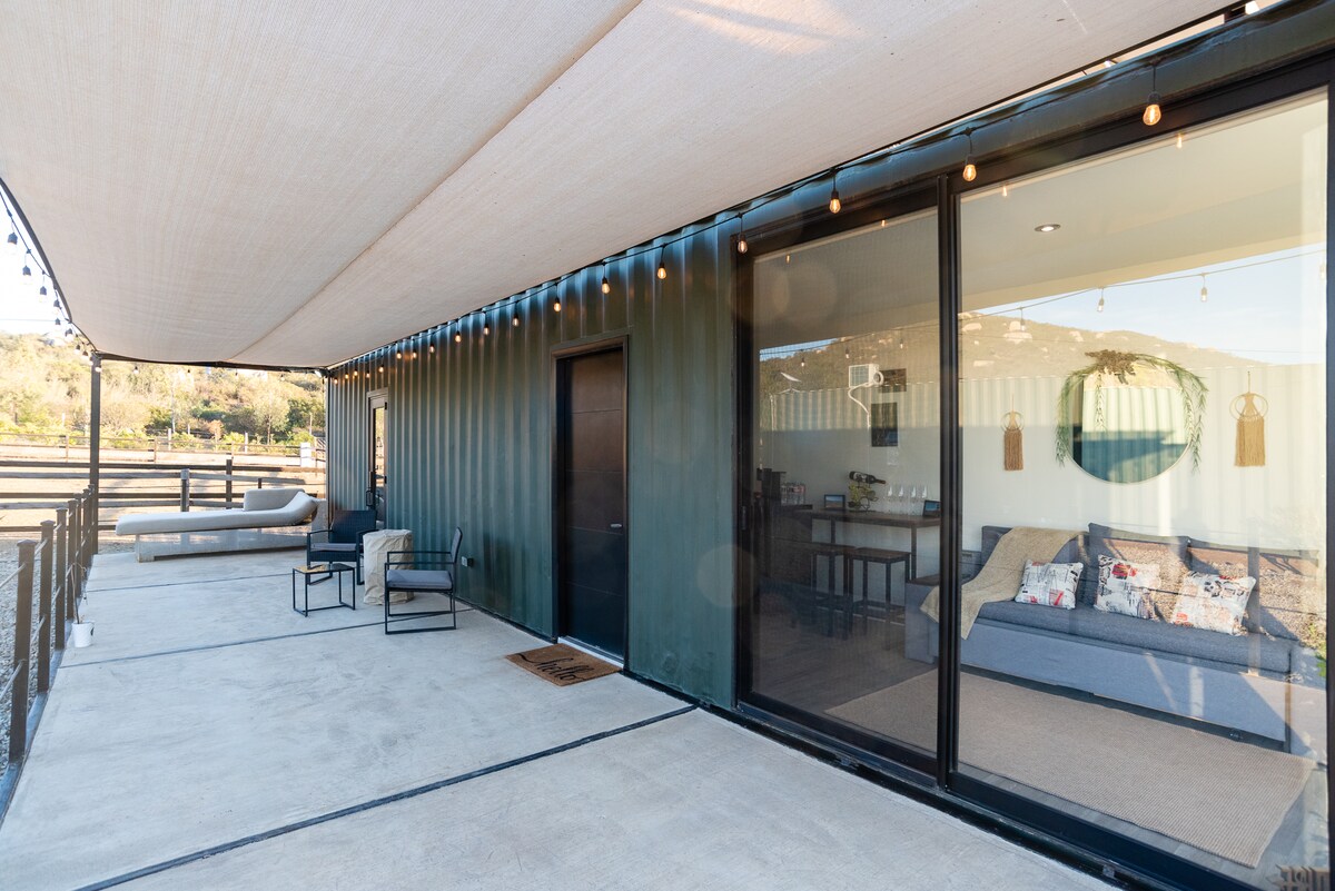 Pakene tähän uskomattomaan 40 jalan konttitaloon. Nauti Valle de Guadalupen kauniista ympäristöstä ja viinitarhoista. Olemme 6 minuutin kuoppaisen hauskan ajomatkan päässä El Cielosta, Vena Cavasta ja muista erinomaisista viinitiloista. Tämä on rahtikontti, jonka uudistimme kokonaan ja lisäsimme 8' x 40' terassin nauttiaksemme ja päästäksemme pois kiireisistä aikatauluistamme. Suunnittelimme kauniin tilan, josta toivottavasti nautit!