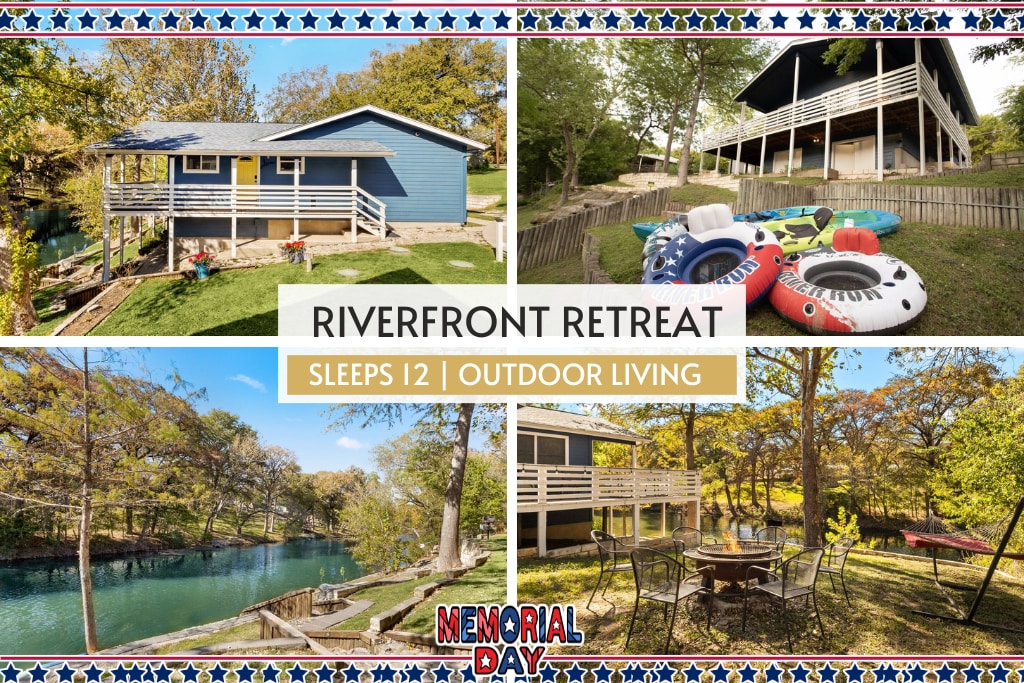 Tervetuloa Fluss Haus Guadalupeen, joka sijaitsee 1 eekkerin alueella kauniilla Guadalupe-joella Texas Hill Countryssa! Nauti omasta yksityisestä pääsystä joelle suoraan varjoiselta takapihaltamme tai matkusta vain 5 minuuttia Horseshoe- tai Canyon-järvelle, 20 minuuttia historialliseen Grueneen tai 25 minuuttia Schlitterbahnille New Braunfelsiin. Tämä kiinteistö tarjoaa mahtavan jokitalo (Fluss Haus) -elämyksen niille, jotka haluavat rentoutua ja viettää aikaa ystävien ja perheen kanssa Texas Hill Countryssa. Lemmikkieläimille sopiva! (2 lemmikkieläimen raja, pieni maksu)