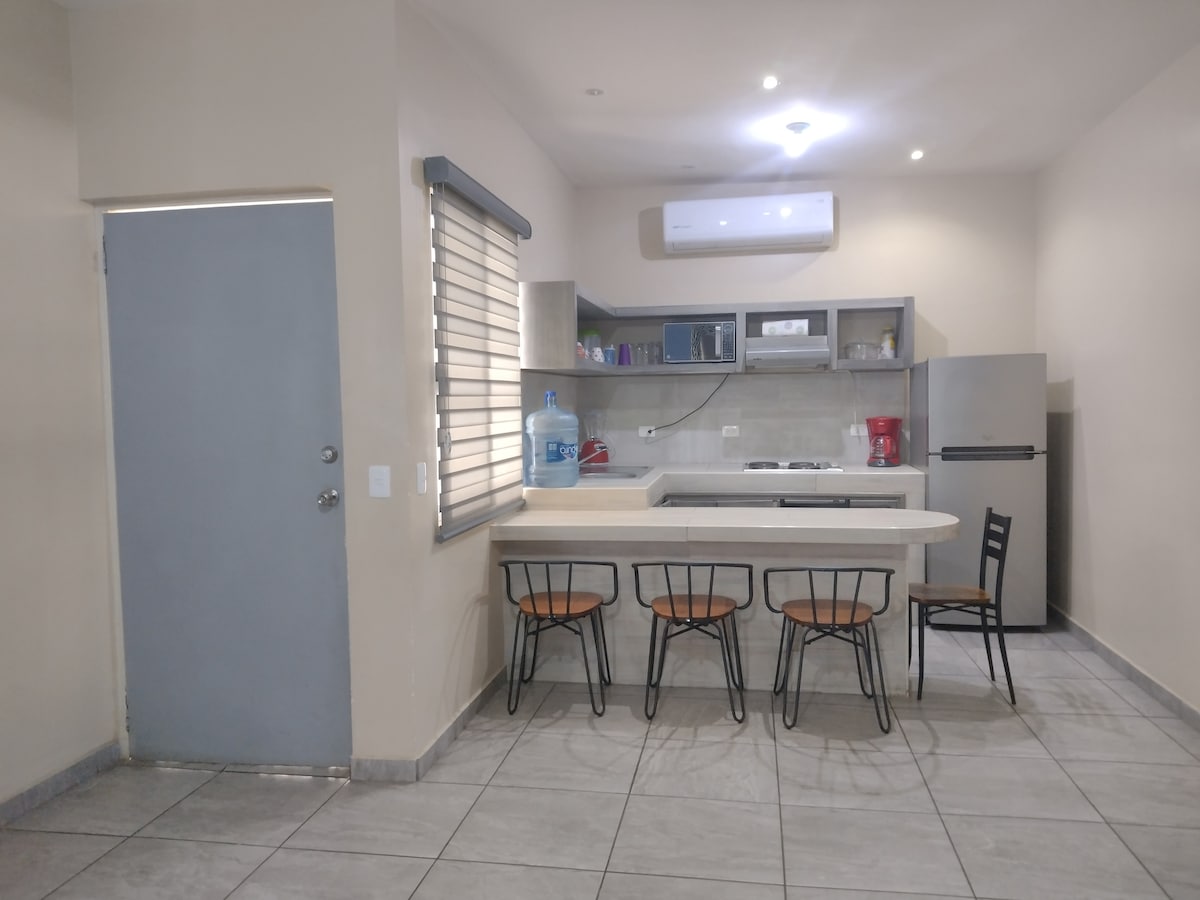 Mukava täysin kalustettu talo, joka on ihanteellinen nauttimaan San Carlosin kauniista rannoista ja sen laajasta valikoimasta vierailukohteista. Sisältää keittiön, jossa on liesi, mikroaaltouuni, tehosekoitin, leivänpaahdin, kahvinkeitin, astiat, jääkaappi ja kaikki tarvittavat välineet ruoan valmistamiseen. 3 Smart TV:tä, joissa on Netflix-palvelu ja langaton internet, sisältyvät hintaan. Meillä on 3 vuodetta ja vuodesohva. Siellä on 3 minisplittiä, yksityinen pysäköinti ja takapiha, jossa on grilli, pergola ja suuri pöytä. 4 rantatuolia.