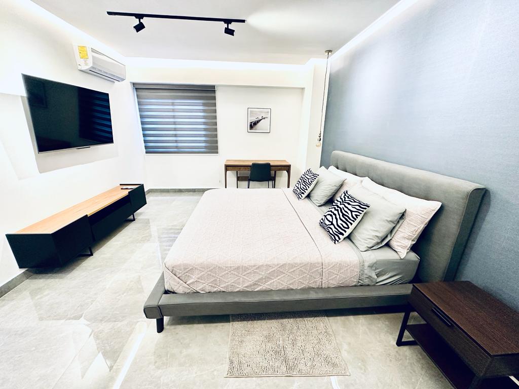 Moderni huoneisto Santo Domingon sydämessä Tästä ainutlaatuisesta yksiöstä, joka sijaitsee 6. kerroksessa (West Building), on upeat näkymät Karibianmerelle ja Malecónille, joka on kuuluisa rantabulevardi ✔ King-vuode -huone maksimaalisen mukavuuden takaamiseksi ✔ Ilmastointi Nopea kuituoptinen ✔ WiFi (SELKEÄ) Yksityinen ✔ osakehuoneisto, jossa on ympärivuorokautinen vartiointi ✔ Yksityinen pysäköinti ✔ Hissi ja sähkögeneraattori Ihanteellinen mukavaan ja miellyttävään majoittumiseen kaupungissa.