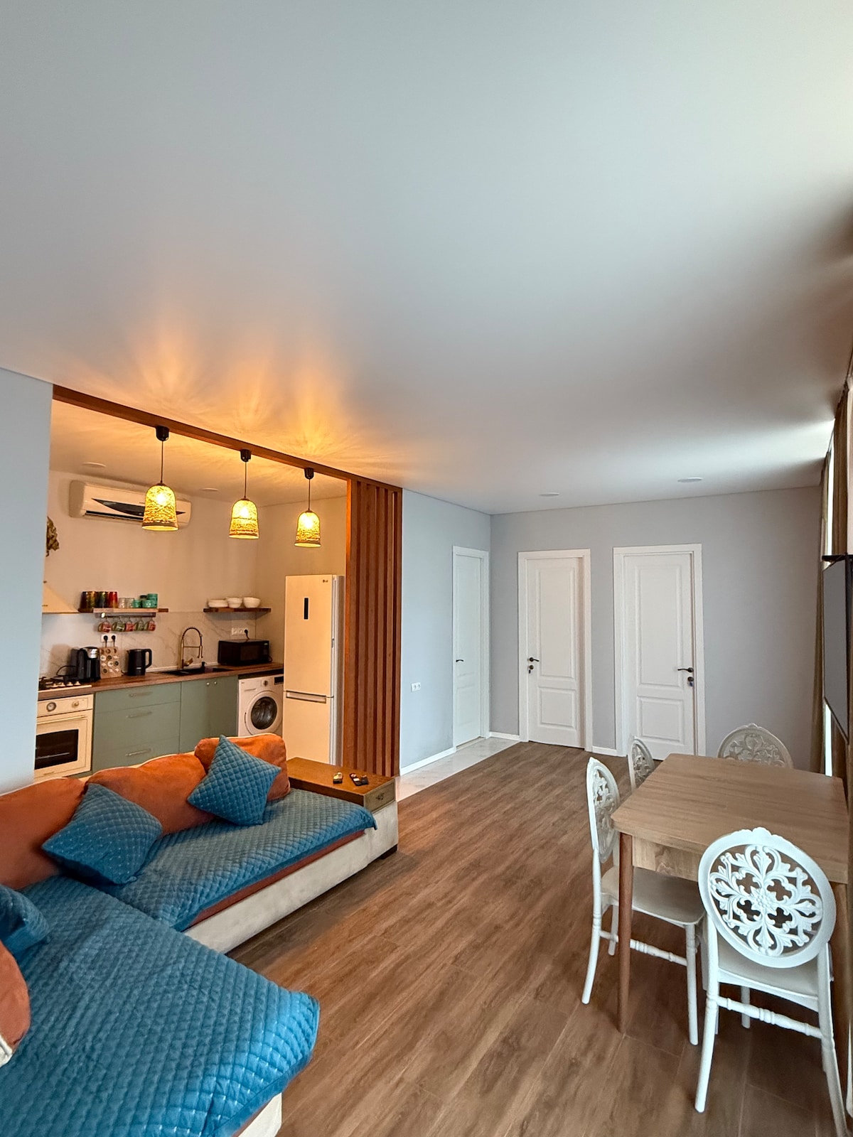 Huoneistot sijaitsevat rauhallisella paikalla 10-12 minuutin kävelymatkan päässä Urekin hiekkarannalta. Huoneistoissa on erillinen sisäänkäynti, ja ne sijaitsevat toisessa kerroksessa. Huoneistoissa on kaikki tarvittava miellyttävään ja huolettomaan lomaan: keittokomero, jääkaappi, mikroaaltouuni, vedenkeitin, tarvittavat astiat, pesukone, silityslauta ja silitysrauta, televisio, ilmastointi, ilmainen internetyhteys. Kauppoja, kahviloita, viihdettä, apteekkeja 5-8 minuutin kävelymatkan päässä. Lataa akut tässä rauhallisessa ja tyylikkäässä paikassa.