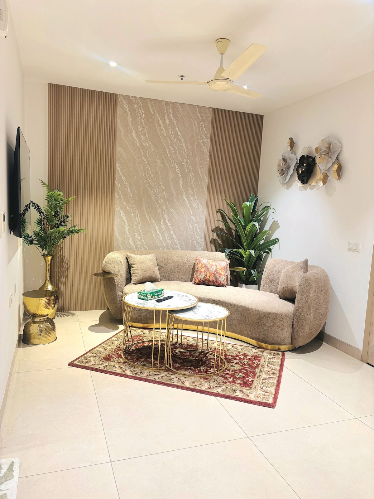 A ground floor home on a tree-lined street in DLF Phase 2 â recently renovated, spotlessly maintained, and just minutes from Cyber City, Golf Course Road, Delhi Metro & IGI Airport. Shorter commutes, lighter cab fares. The generous 2BR layout with a spacious living room; all air-conditioned, a pantry kitchen, and an uncommon luxury in Delhi NCR â a private backyard. If you appreciate naturally lit spaces, minimalist design, and a genuine focus on cleanliness â you will feel right at home here.