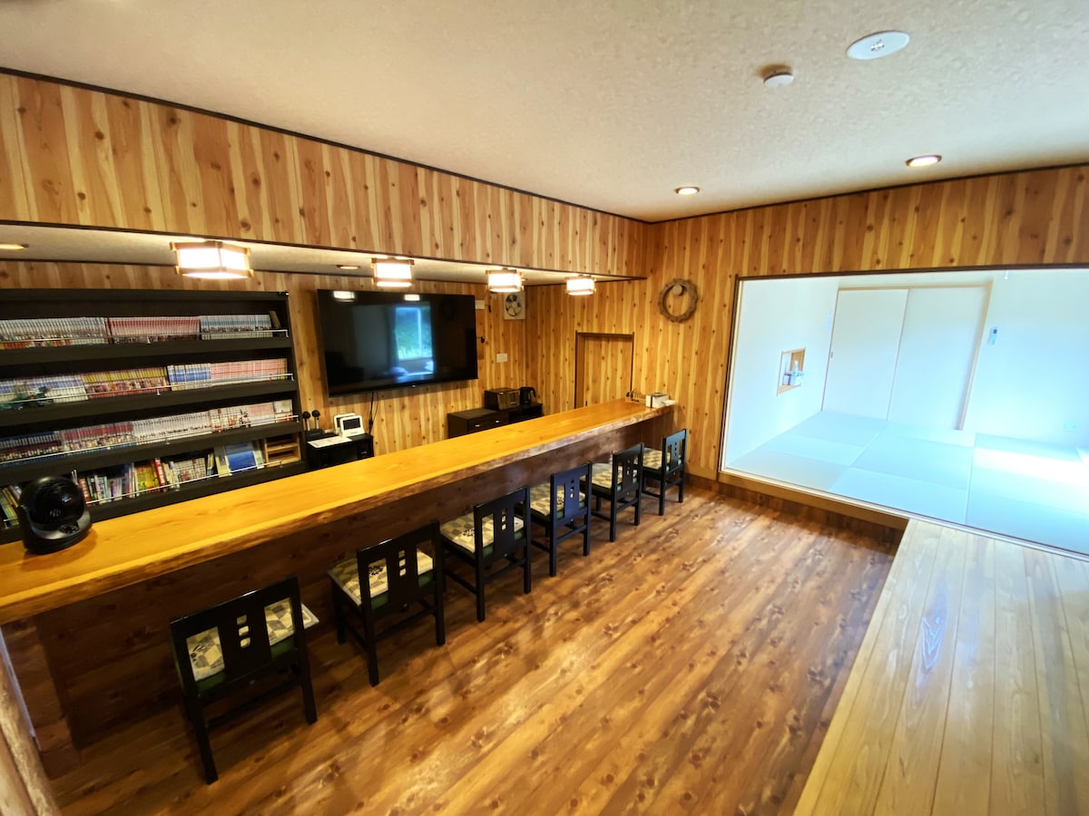 Vuokraa entinen snackbar, jota ympäröi Hachijojiman luonto! Se on täydellinen tukikohta suurille ryhmille, matkustatpa sitten ystävien tai perheen kanssa tai ryhmäretriitillä. Nautittuasi saaren kauniista maisemista palaat majataloon ja nautit erityisestä ajasta täysillä.