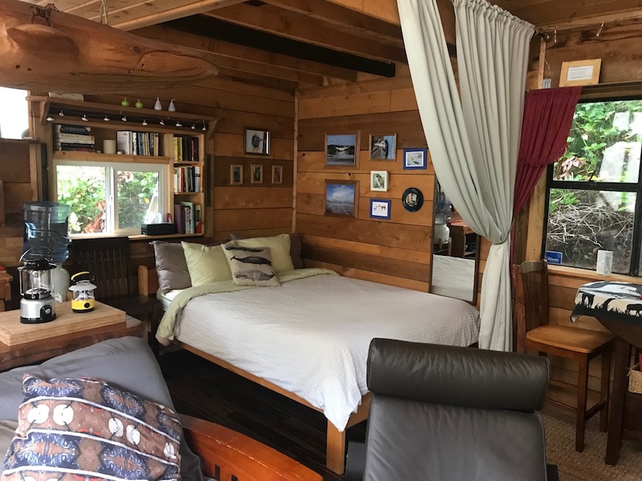 Rentoudu ja rentoudu tässä ainutlaatuisessa, rauhallisessa lomakohteessa. Pieni mökkimme sijaitsee meren rannalla Hecate Straitin suuntaan. Meillä on kilometrejä syrjäistä rantaa, jossa voit nauttia auringonnoususta ja merivedestä. Pienessä mökissä on kaikki, mitä tarvitset viihtyisään majoittumiseen: puuhella, lämmitin, parivuode, keittokomero, grillaus ja nuotiopaikka. Kohteessa on erillinen täysin varusteltu jaettu kylpyhuone, jossa on yksityinen ulkosuihku. Paljon tilaa pystyttää teltta, tai voimme tehdä patjan lattialle lapsille.