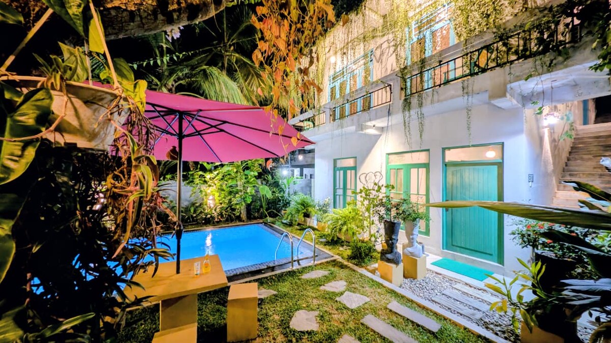 Ympäröivässä trooppisessa kylässä sijaitseva huvilamme tarjoaa täydellisen mukavuuden ja rauhallisuuden kotinasi poissa kotoa. Nauti kauniista ja vehreästä trooppisesta puutarhasta, mene uimaan tai surffaamaan lahdella vain 150 metrin päässä. Huvilamme on täydellinen paikka, kun haluat nauttia virkistävästä ajasta. Ayurveda-keskuksemme on aivan vieressä. Huvilassa on LTE-reititin. Olemme rauhallisella alueella, jolla ei ole läpikulkuliikennettä.