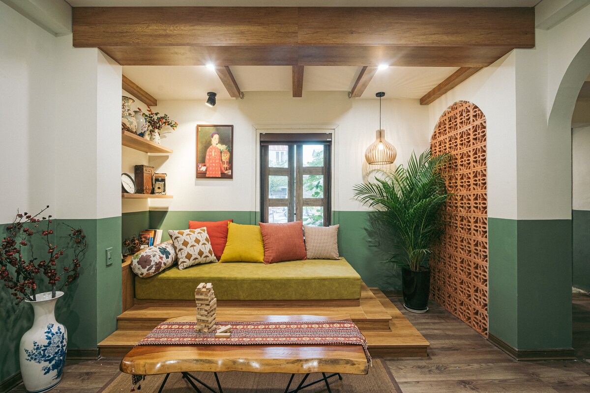 Tämä 40 m2:n huoneisto nimeltä BROWN sijaitsee keskellä Hanoin vanhaa katuja, joilla on paljon turisteja. Se on toisessa kerroksessa, ja se on yhteisen vihreän pation suuntainen, joka on korvaamaton tässä ahtaassa kaupungin keskustassa. BROWN on täydellinen tukikohta tutustua kaikkiin kaupungin osiin, vain 1 minuutin kävelymatka Hoan Kiem -järvelle, 1 minuutin kävelymatka yömarkkinoille ja 1 minuutin kävelymatka kuuluisalle Ta Hien -kadulle. Läheisellä Hoan Kiemin kävelykadulla on melua ja musiikkia perjantai–sunnuntai klo 19.00–23.00.