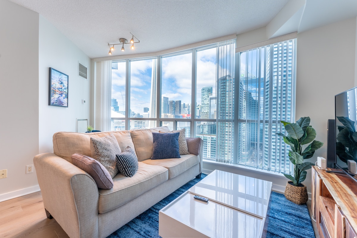 Astu moderniin ja tyylikkääseen 1 makuuhuoneen ja 1 kylpyhuoneen huoneistoon yli 40. kerroksessa Toronton keskustan sydämessä. Sieltä on upeat panoraamanäkymät CN Toweriin, Rogers Centeriin, viehättävään järveen ja paljon muuta. Tutustu kaupunkiin ennen kuin vetäydyt tähän upeaan helmeen, jonka miljoonan dollarin näkymät ja rikkaat mukavuudet saavat sinut ihastumaan. ✔ Panoraamanäkymät kaupunkiin ja järvelle ✔ Mukava makuuhuone ✔ Avoin suunnittelu ✔ Täysin varustettu keittiö ✔ Älytelevisio ✔ Nopea wifi ✔ Pesukone/kuivausrumpu Katso lisää alta!