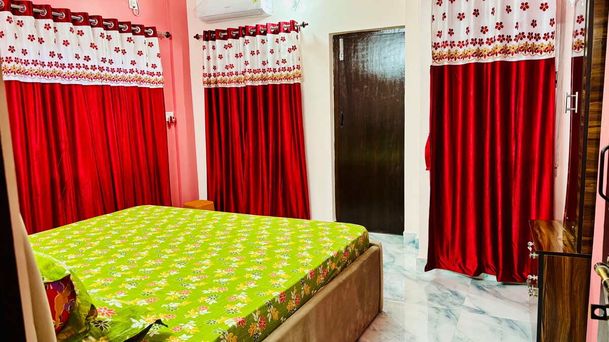 Huomaa: Avoparit eivät ole sallittuja. Voit unohtaa huolesi tässä tilavassa ja rauhallisessa huvilassa. Huomaat vilauksen Bengalin kulttuurista tässä paikassa. Siinä on olohuone, jossa on 6-paikkainen sohva, keskipöytä, Bluetooth-musiikkisoitin ja pesualtaan käytävä. Suuri keittiö, jossa on kaasu-uuni, mikroaaltouuni, leivänpaahdin, ruokailuvälineet, painekeitin, jääkaappi ja ruokapöytä ja tuolit. 1 kylpyhuone geyserillä. 2 makuuhuonetta, joissa on kaksi ilmastointilaitetta, 2 parivuodetta, vaatekaapit, 2 sivupöytää, televisio ja työnurkka, jossa on toimistotuoli ja pöytä. (Nopea WiFi)