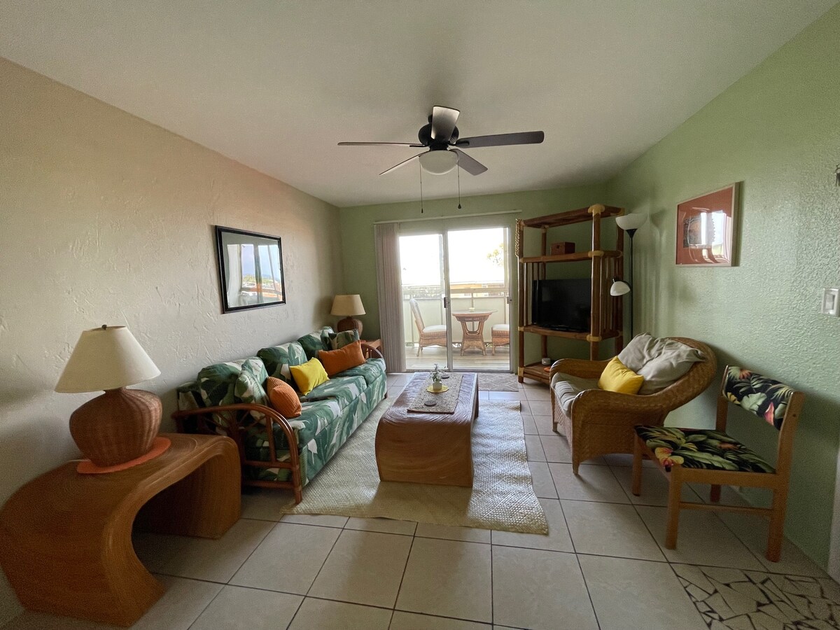 Paras asunto Kailua-Konan suositussa Sea Villagessa ja yksi harvoista, joissa on ilmastointi! Kiehtovat merinäkymät, tuulenhenkäykset, trooppinen maisema ja äänet toivottavat sinut tervetulleeksi tähän helposti saavutettavaan pohjakerroksen huoneistoon. Aloita päiväsi yksityisellä lanai-kuistilla katsellen pyörädelfiinejä ja päätä se viinilasillisella katsellen auringonlaskua meren yllä. Tämä täysin päivitetty, avaimet käteen -huoneisto tarjoaa avoimen konseptin elämää ja on 5 minuutin päässä keskustasta. Ihanteellinen tukikohta yksilölle, pariskunnille tai pienille perheille tutustua Big Islandiin!