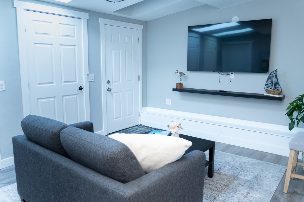 Jos etsit yhtä Walnut Creekin parhaista Airbnb-kohteista, etsintäsi päättyy tähän! Huomaat heti saapuessasi tämän kahden makuuhuoneen ja yhden kylpyhuoneen kohteen yksityiskohtien huolellisen suunnittelun ja poikkeuksellisen arvon. Se on täysin varusteltu ensiluokkaista elämystä varten. Tämä vierasmaja erottuu muista katetulla kuistillaan, jossa on kolme kattotuuletinta, korostusvalaistus, kaasugrilli, tulipöytä, kattokruunulla koristeltu ruokapöytä sekä keinu- ja Adirondack-tuolit.