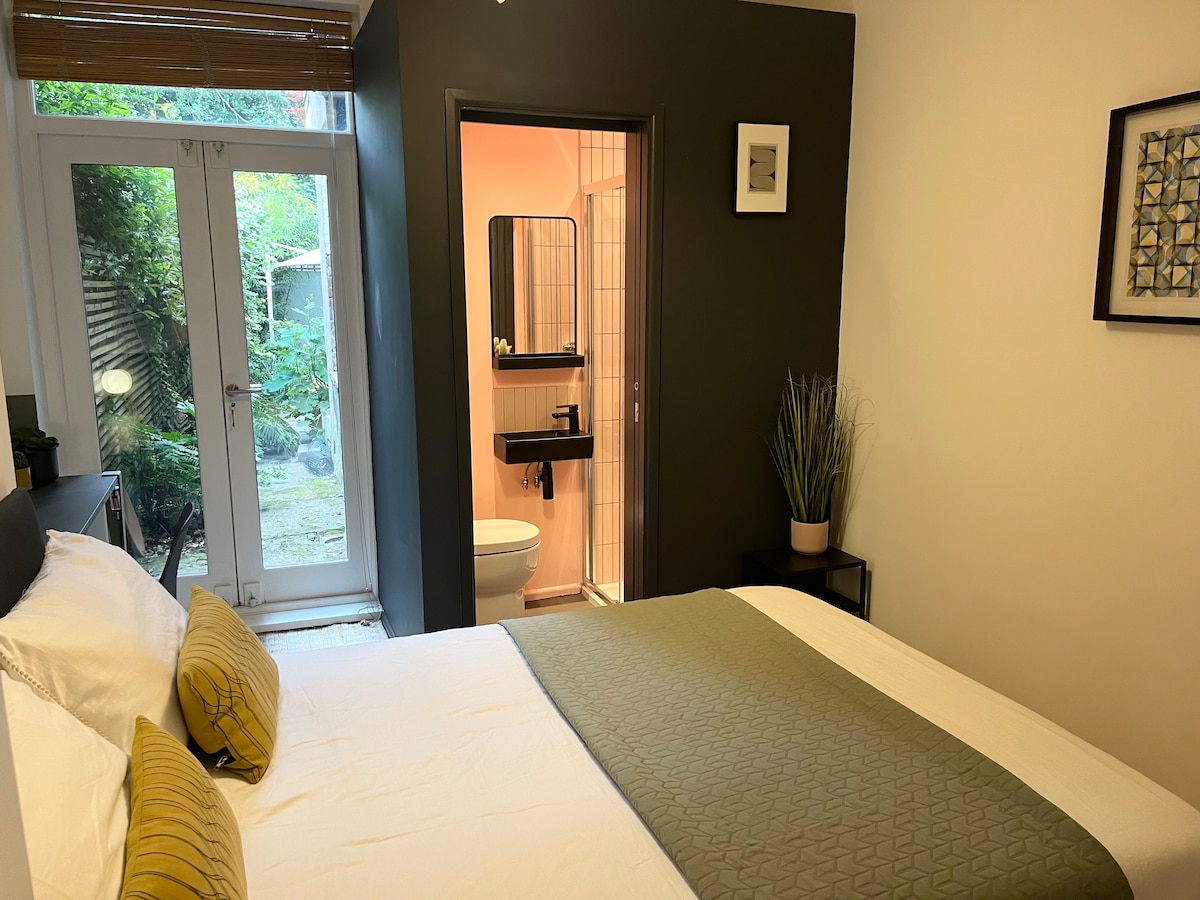 Meillä on tyylikäs tila, joka on lähellä Manchesterin lentokenttää ja 10 minuutin junamatkan päässä kaupungista. Se on osa kotiamme, mutta silti yksityinen; sinulla on pääsy puutarhan kautta, ja tila on kokonaan pohjakerroksessa. Olemme äskettäin remontoineet koko kiinteistön, joten tila on sisustettu kauttaaltaan, ja siellä on äskettäin asennettu ylellinen suihkutila ja päivitetty keittiö. Voit käyttää etelään päin olevaa takapuutarhaa, jossa on kolme aluetta rentoutumiseen ja/tai viihdyttämiseen.