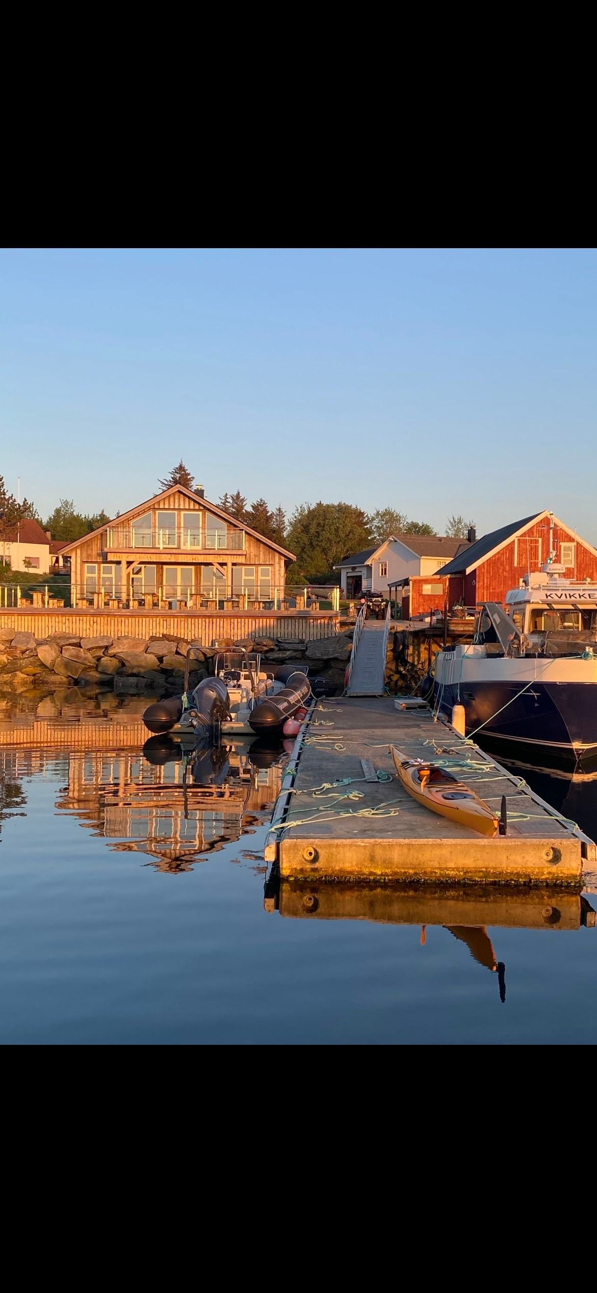 Vakkert hus ved havet. Båt og bil kan også leies.