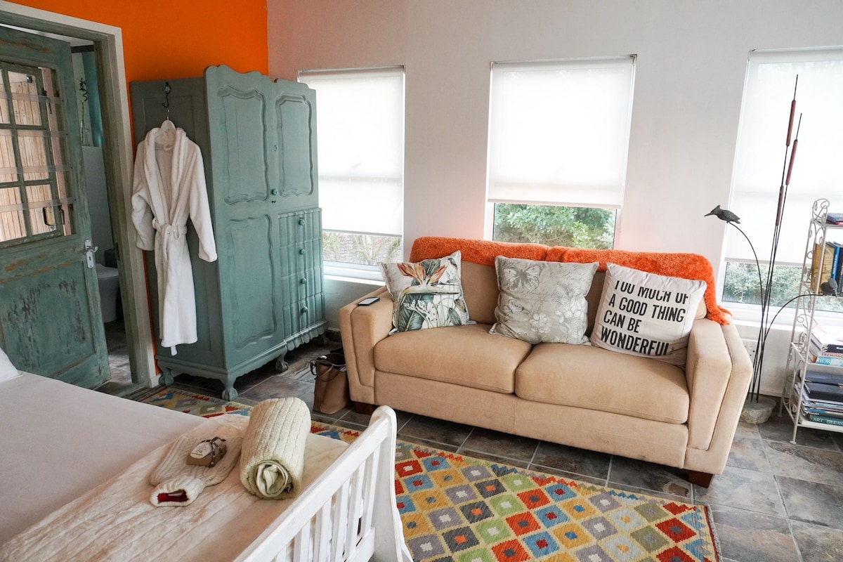 Yksiö, jossa on yksinkertainen design ja siisti tyyli. Yksityinen ympäristö erillisellä sisäänkäynnillä, valokuituinternet, patio, älytelevisio (Netflix) ja yhdistetty turvallisuus rauhallisessa naapurustossa. Vain 3-5 minuutin ajomatkan päässä rannalta ja Onruksen nähtävyyksistä ja 10 minuutin päässä Hermanus Centralista. Täydellinen pariskunnille tai yksin matkustaville, jotka etsivät rauhallista ja kätevää majoittumista. Lemmikkiystävällinen – varmista, että siivoat sekä sisä- että ulkotilojen jäljet ja käsittelet kalusteita huolellisesti.