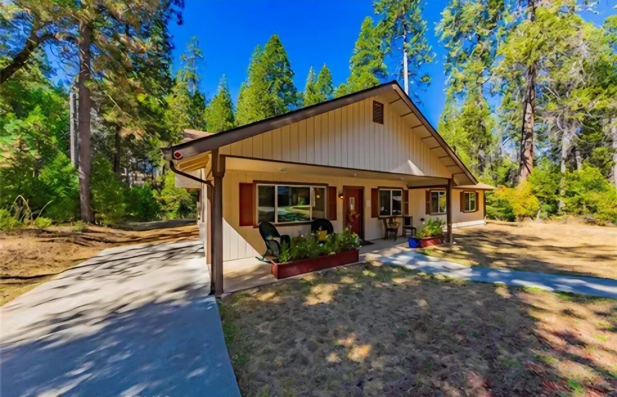 Black Bear Lodge on täynnä lisäominaisuuksia. Täydellinen talvilomille! - Lemmikkiystävällinen - Kävelymatka poluille – Kausittainen lumi – Sierra National Forestin sijainti - 35 mailia Arch Rockin sisäänkäynnille - Yosemite - 35 mailia South Gaten sisäänkäynnille - Yosemite – Tason 1 sähköajoneuvon lataus – Lyhyt ajomatka Bass-järvelle - Upeat vuoristomaisemat - Poreallas - Tähtien katselu - Suuret terassit - Fire Pit – Kuusi yksityistä hehtaaria – Aidattu koirapuisto - Kahvibaari - Puuhella - Viihdeloft - Päivitetty keittiö