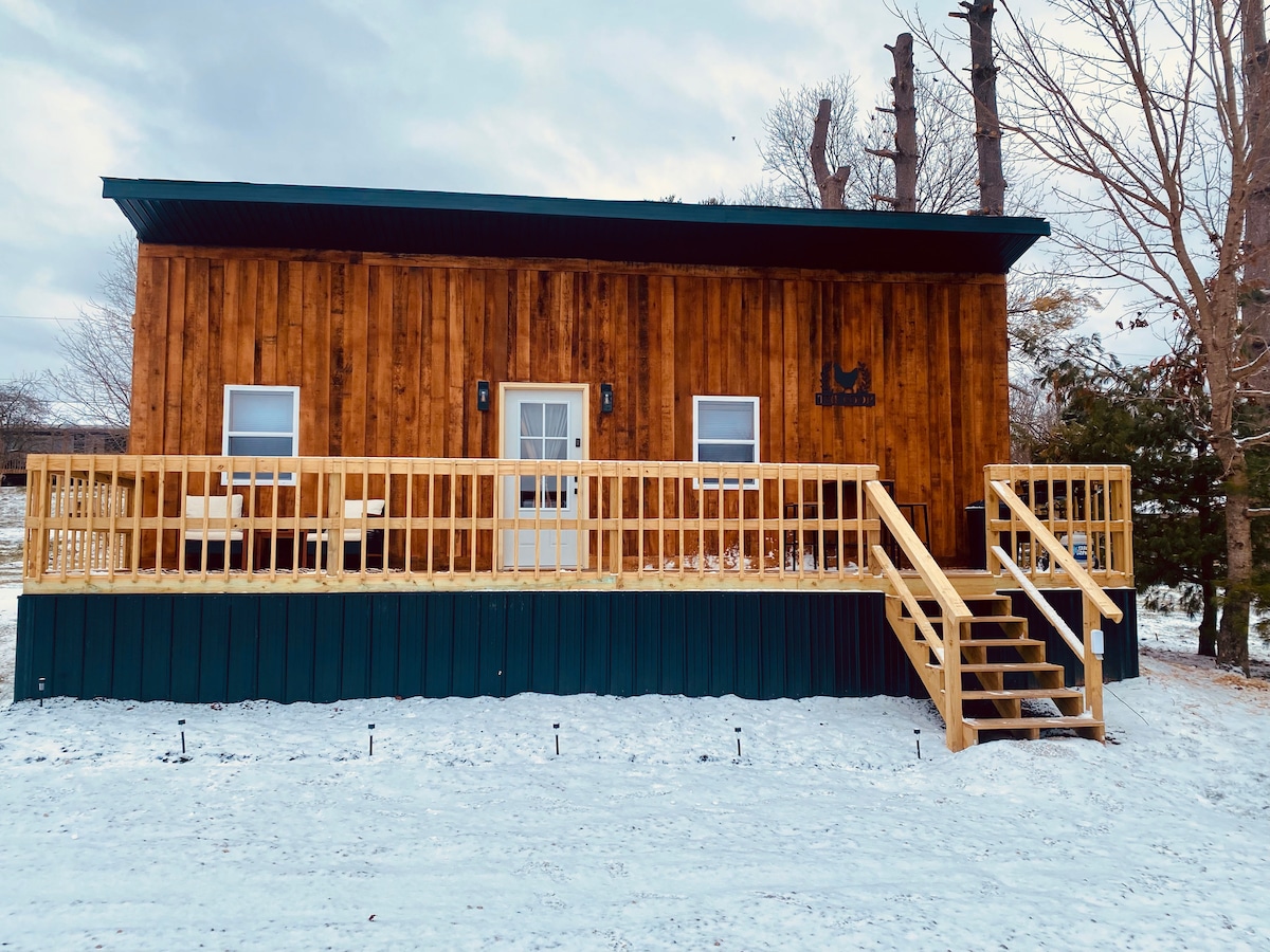 The Juniper Tiny House is a modern and cozy tiny house located in Hocking Hills' premier campground - Campbell Cove Campground. This tiny house features a kitchen with lots of amenities to prepare and serve meals, a full bath with shower, vanity/sink, and flushing toilet, a queen size loft bed, a sofa that converts into a second full size bed, a deck with a view of mature trees and Lake Logan, and a fire pit area for roasting marshmallows and enjoying the great outdoors. HHTax#00342